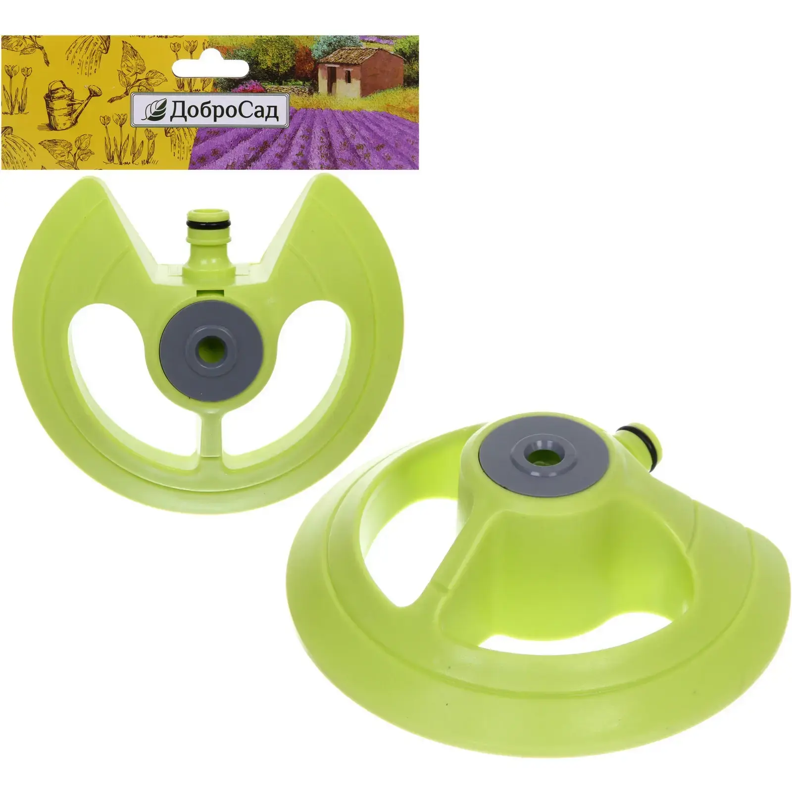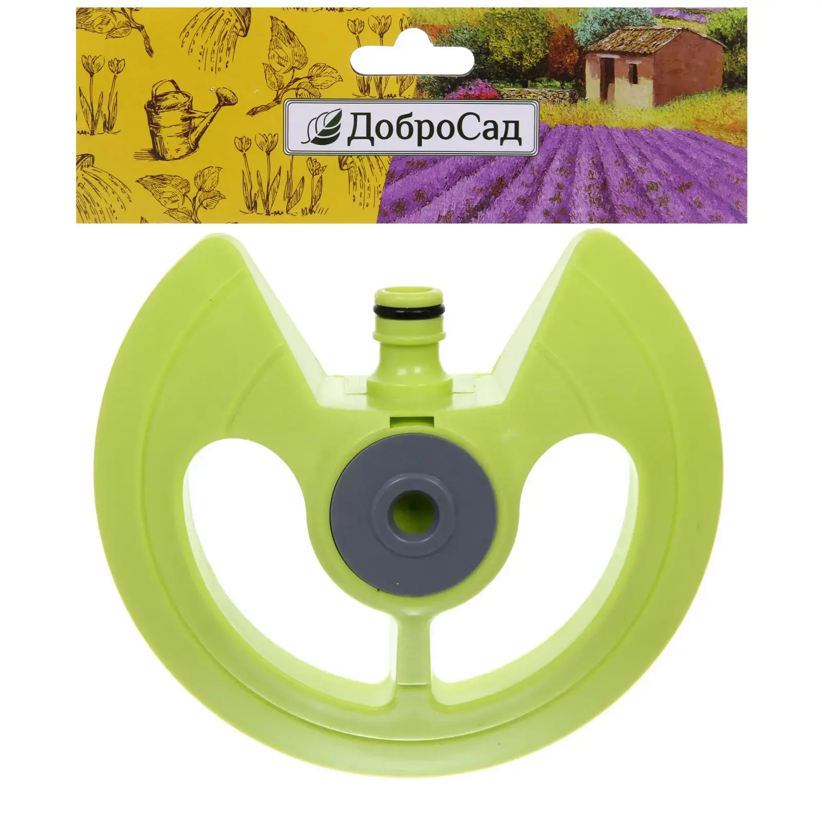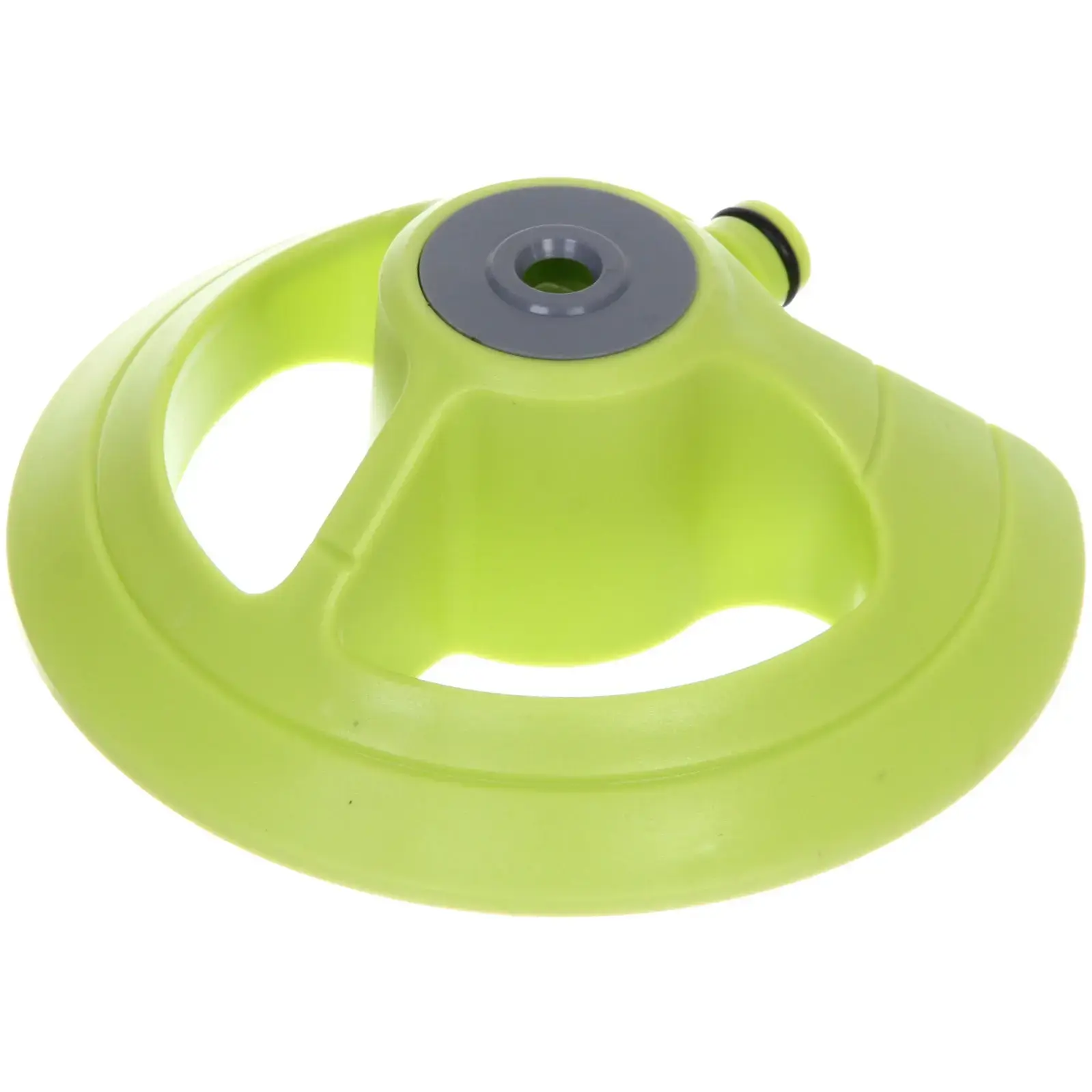 Разбрызгиватель имеет ярко-зеленый цвет и округлую форму с несколькими вырезами, что позволяет жидкости свободно проходить. Центральный элемент предназначен для подключения к поливочной системе. Размеры устройства не указаны, но оно выглядит компактным и удобным для использования в садоводстве. С помощью разбрызгивателя «Green» ваш сад будет выглядеть здоровым и ухоженным, а растения будут получать необходимую влагу для роста и развития.