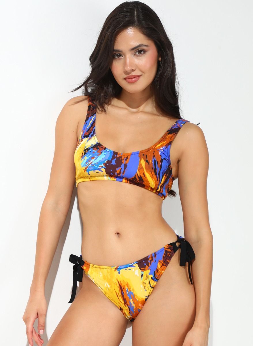 Абстрактный принт в ярких тонах создает эффектный образ, а продуманный крой позволяет наслаждаться активным отдыхом без ограничений.