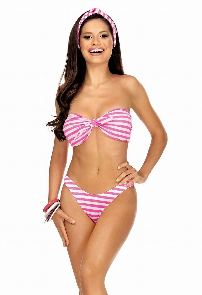 Раздельный комплект бандо от бренда Lorin сочетает стильный дизайн и функциональность. Полосатый принт в нежных розово-белых тонах создаёт летнее настроение, а эргономичный крой гарантирует уверенность в каждой движении.