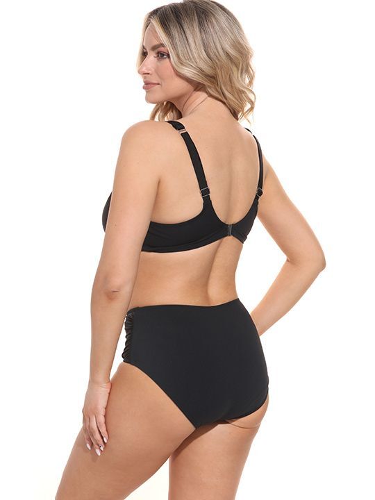 Купальник состоит из бюстгальтера на косточках с мягкой чашкой и трусов-слип с декоративной сборкой сбоку. Он подходит для женщин, которые ценят комфорт и стиль. Лиф с широкими бретелями обеспечивает надежную поддержку, а плавки с утягивающим эффектом создают идеальный силуэт.