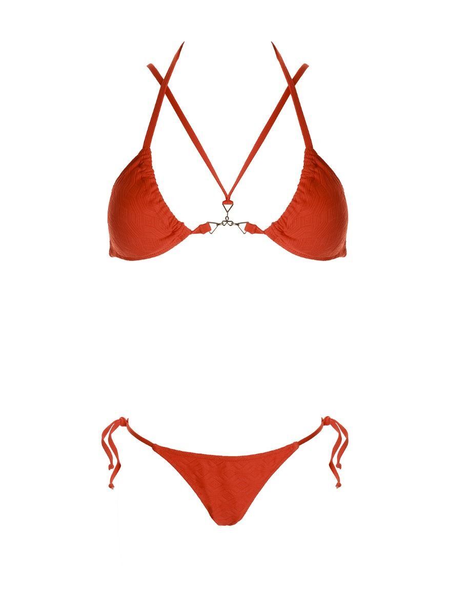 Купальник представлен в коралловом цвете, который отлично подчеркивает загар и подходит для любого типа кожи. Лиф имеет треугольную форму, а плавки с низкой линией талии создают эффект легкости и свободы. Не упустите возможность добавить этот стильный купальник в свой гардероб и наслаждаться каждым моментом на пляже!