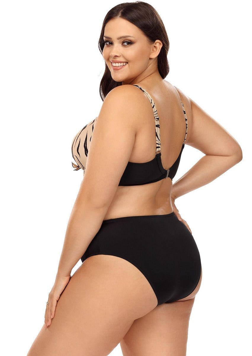 Купальник раздельный plus size 'Lorin', анималистический принт, бежево-черный, размер 75D/38