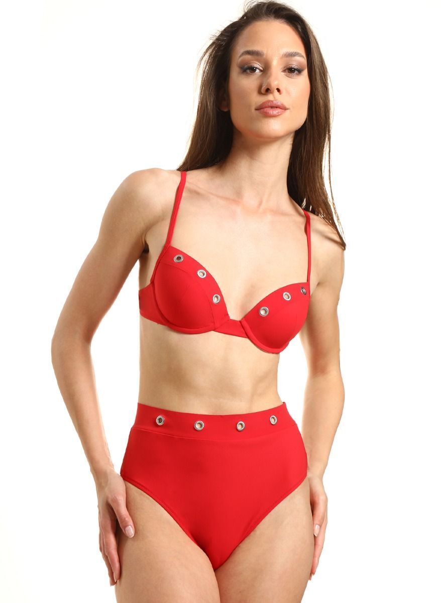 Купальник раздельный пуш-ап 'Cala Salada' с клепками, красный, размер C/M, полиамид/эластан