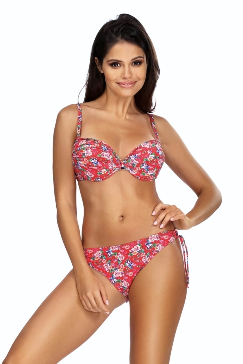 Состав: 85% полиамид + 15% эластан — материал сохраняет форму после многократных стирок. Цветочный принт в красных тонах скрывает возможные загрязнения. Европейская размерная сетка (ориентируйтесь на таблицу производителя).