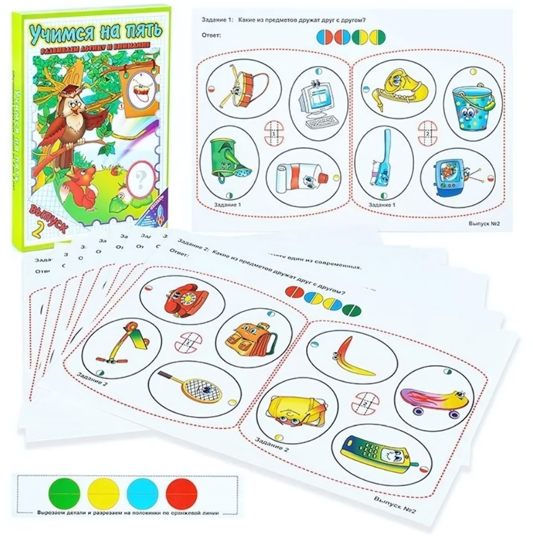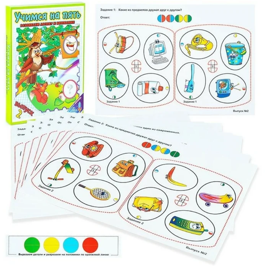 Настольная игра "Учимся на пять" выпуск 2: развитие логики, 50 карточек с заданиями, 5+ лет