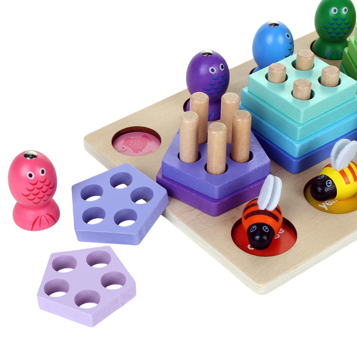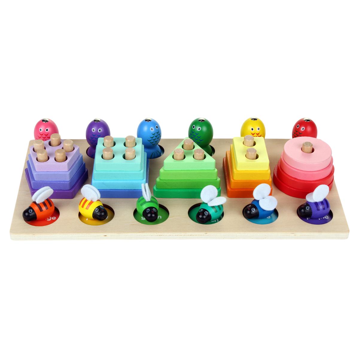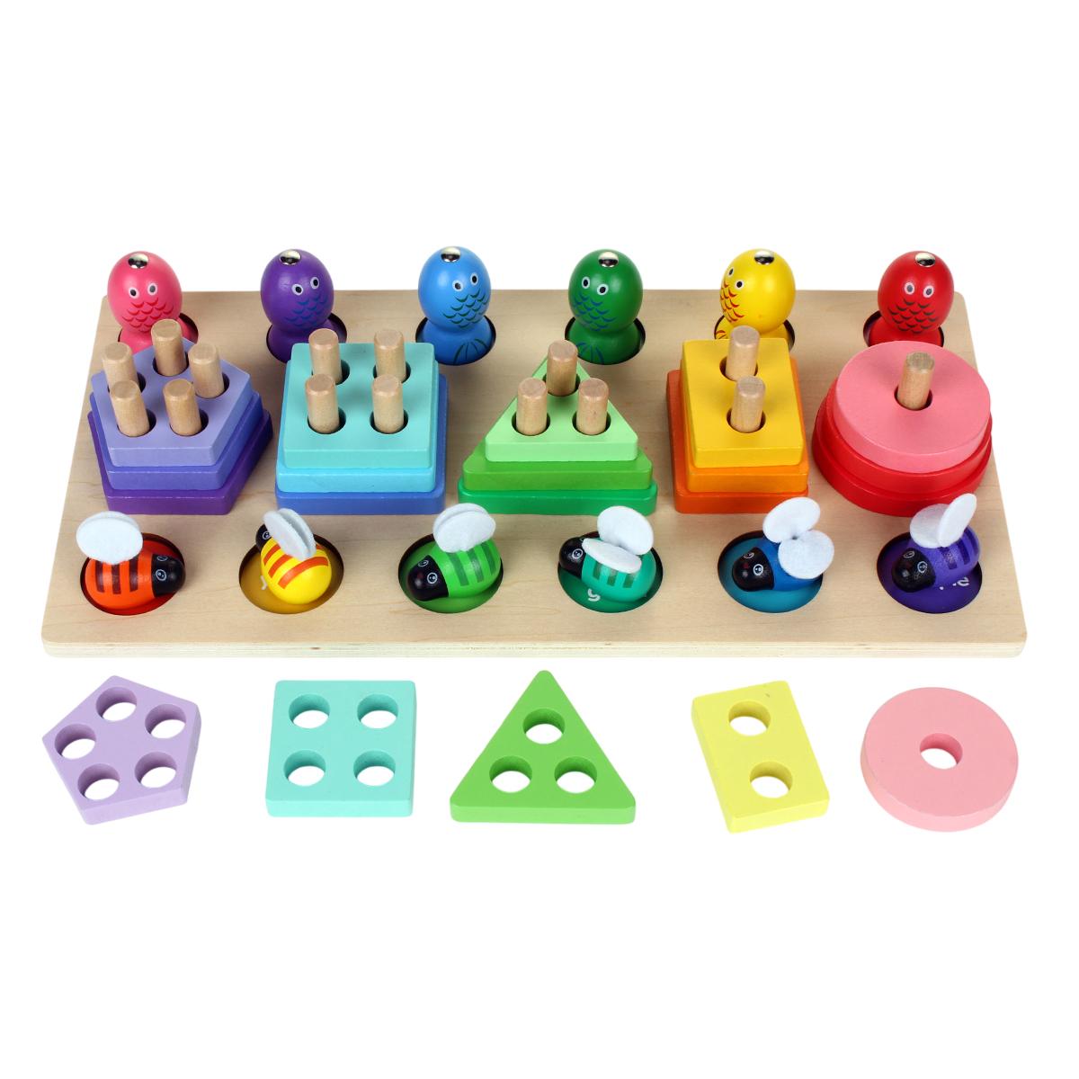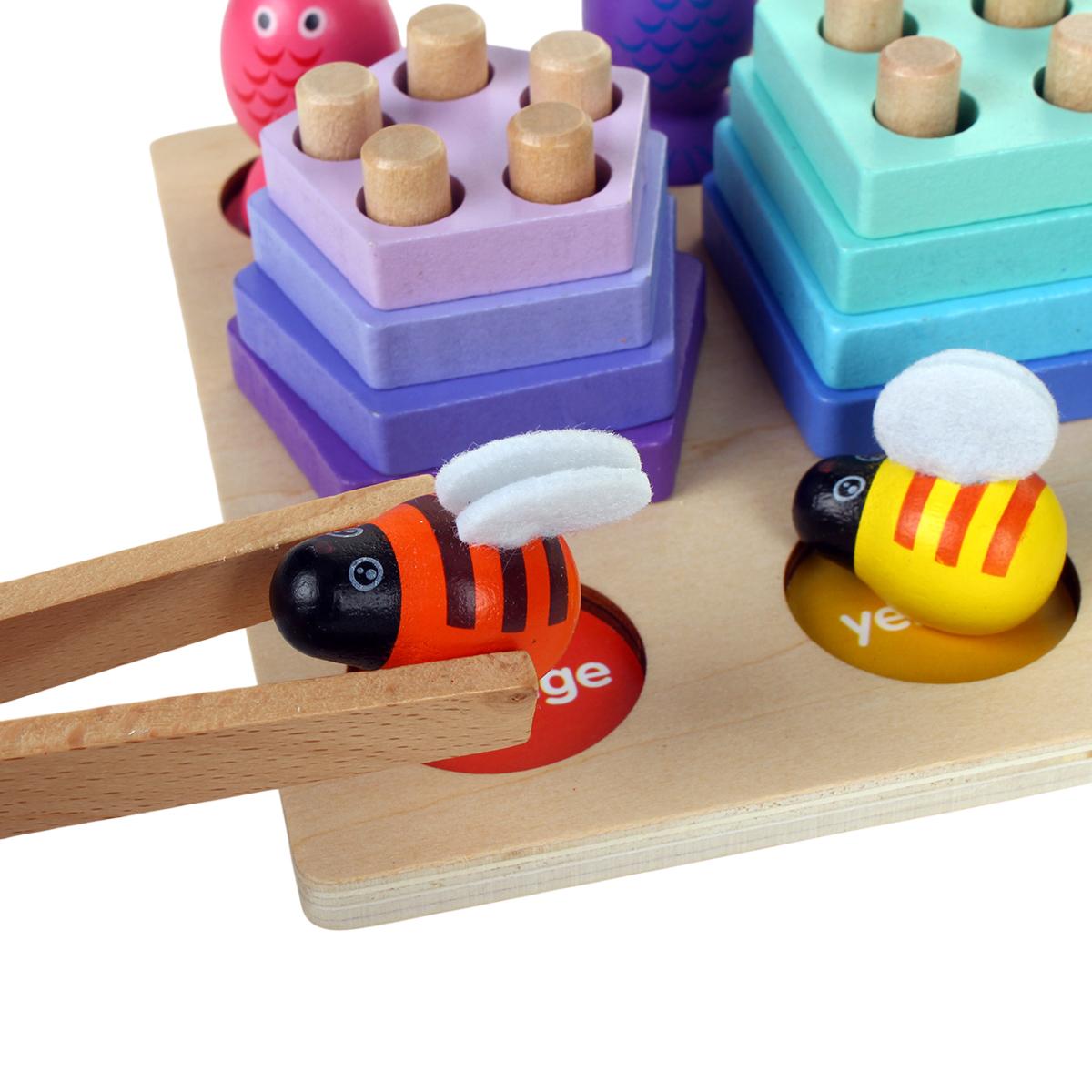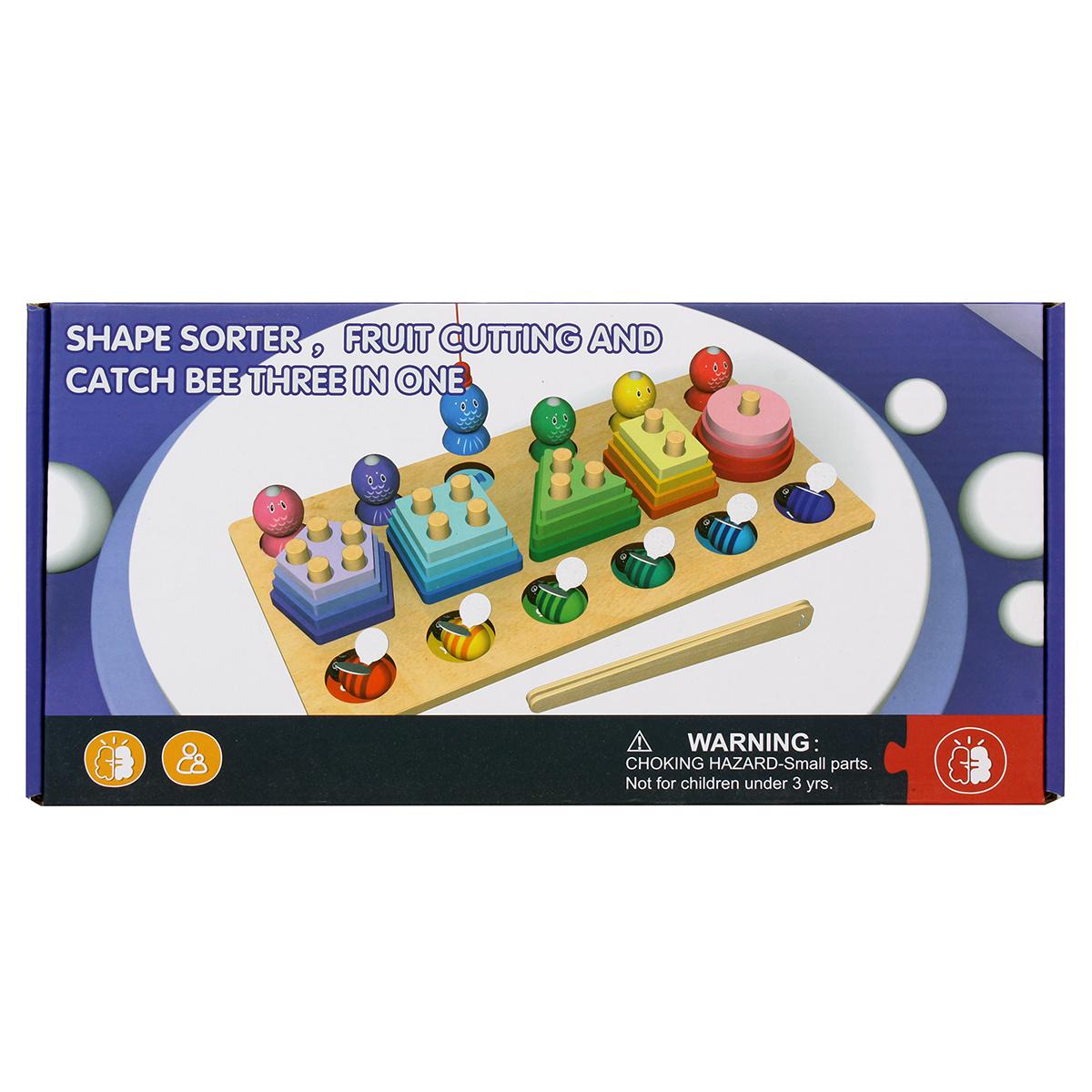 Эта уникальная деревянная игрушка сочетает в себе три увлекательные игры: сортировку форм, нарезку фруктов и ловлю пчел. Она не только развлекает, но и способствует развитию логического мышления и мелкой моторики у детей. Ваш малыш будет с интересом изучать формы и цвета, а также решать головоломки, что делает игру не только веселой, но и полезной.