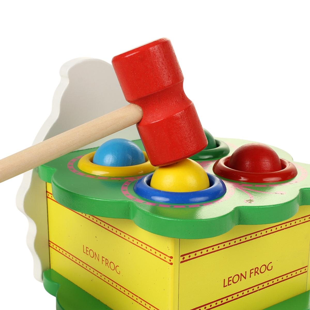 Размер игрушки составляет 12х15х30 см, что делает её удобной для маленьких ручек. В комплект входят 4 цветных шара: красный, синий, желтый и зеленый, а также деревянный молоток. Игрушка упакована в яркую коробку, что делает её отличным подарком для любого малыша.