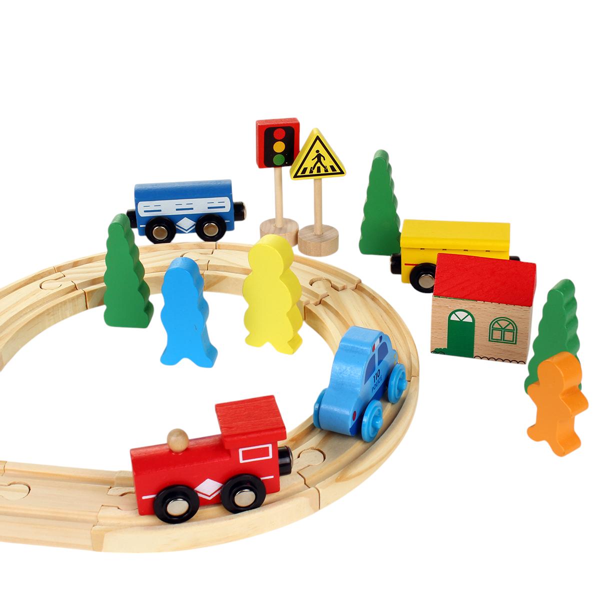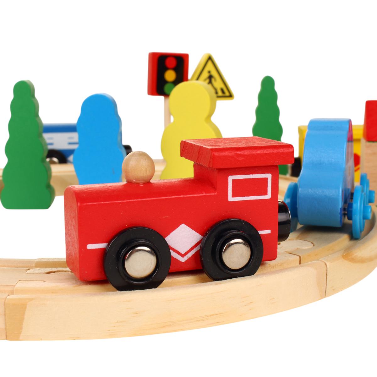 Деревянная железная дорога — это идеальный способ занять вашего ребенка и развить его воображение. Эта игрушка не только увлекательна, но и способствует развитию моторики и логического мышления. С набором из 33 элементов ваш малыш сможет создать собственный мир, где поезда будут мчаться по рельсам, а деревья и домики создадут атмосферу настоящего городка.