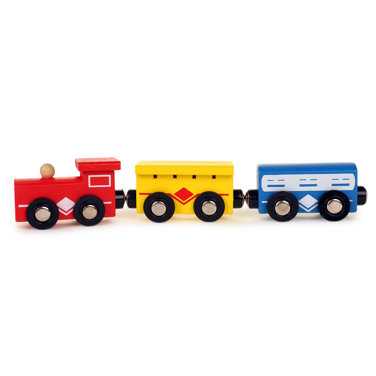 Игрушка подходит для детей старше 3 лет и идеально подходит для игры как в одиночку, так и в компании друзей. С помощью ярких деталей, таких как поезда, деревья и дорожные знаки, ребенок сможет развивать свои творческие способности и фантазию. Деревянные элементы легко соединяются между собой, что позволяет создавать различные конфигурации железной дороги.