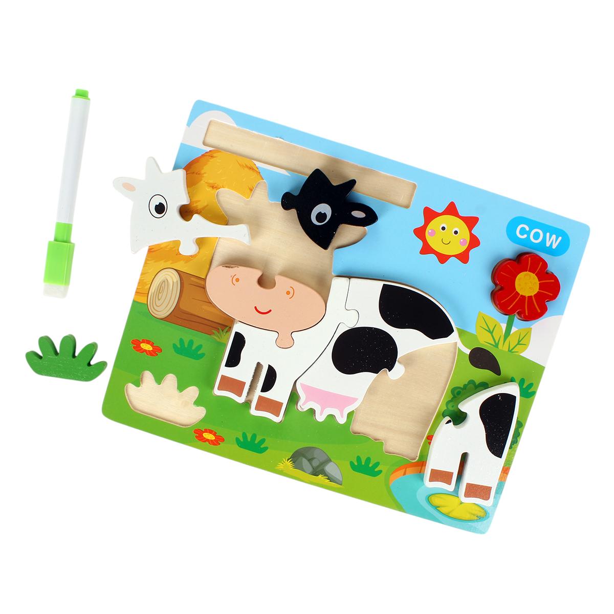 Деревянный пазл-вкладыш с 8 тематическими картинками — идеальный инструмент для гармоничного развития вашего ребёнка. Безопасные округлые детали с красочными изображениями животных и персонажей превращают обучение в увлекательную игру.