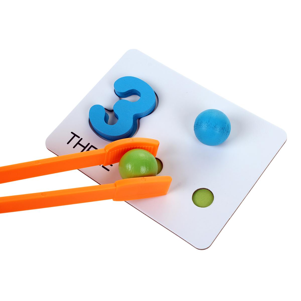 Комплектация включает: деревянную основу с магнитными зонами (25х21х3,5 см), 10 пронумерованных карточек, 24 разноцветных шарика из ударопрочного пластика, магнитную ручку-переноску. Все элементы прошли проверку на закруглённость краёв и отсутствие мелких деталей.