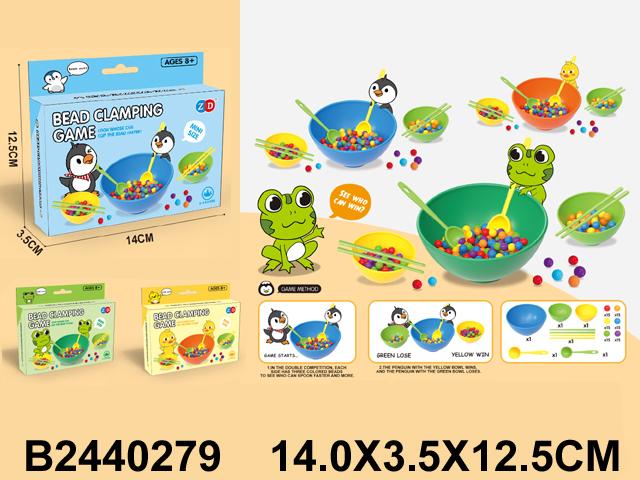 Настольная игра bead clamping game — это динамичное развлечение для детей, которое помогает развивать мелкую моторику, координацию движений и скорость реакции. Формат соревновательной игры делает процесс особенно захватывающим: участники стараются быстрее соперников перенести шарики в свою миску с помощью ложек или палочек.