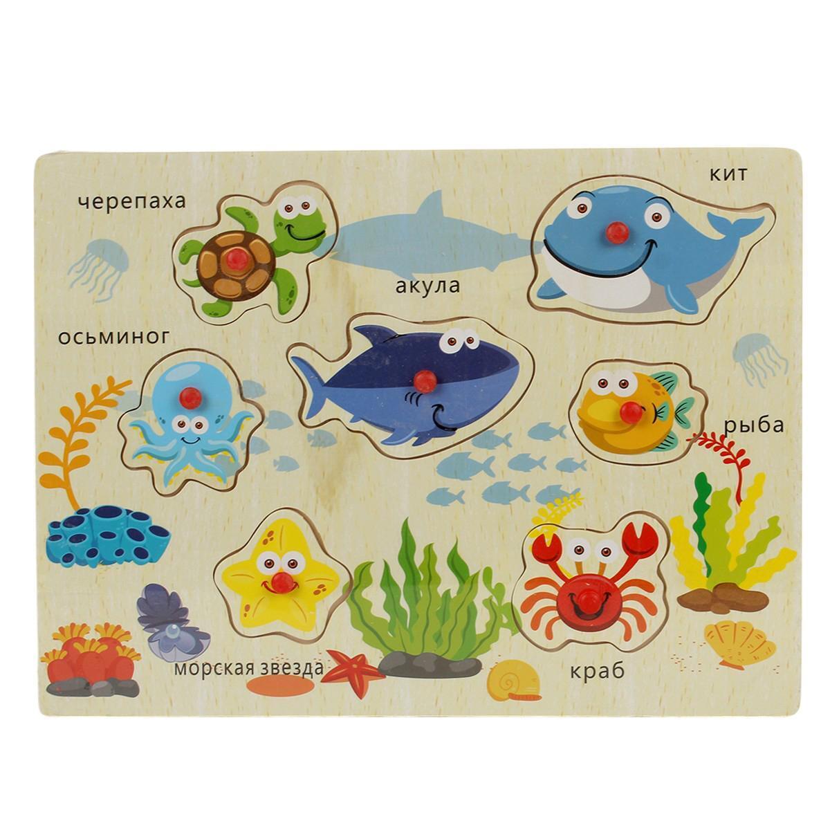 Рамка-вкладыш деревянная 'Морские жители', 30х22см, с ручками для удобства