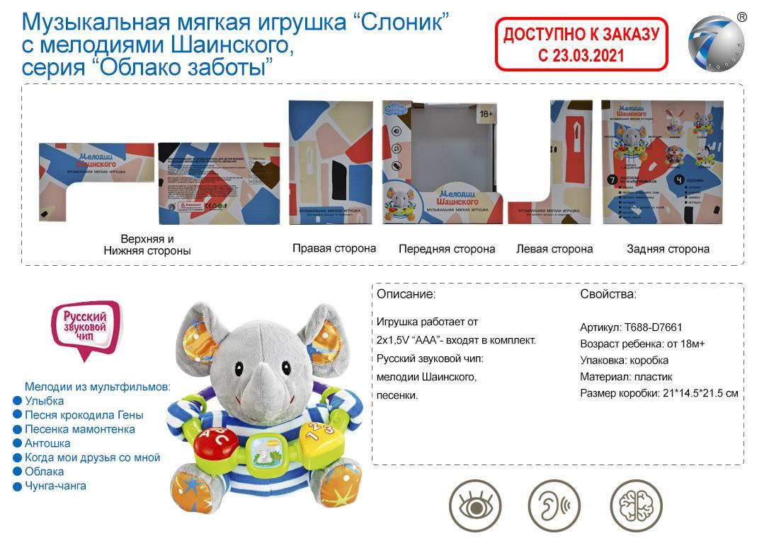 Размер упаковки составляет 21х14,5х21,5 см, что делает её удобной для хранения и транспортировки. Слоник имеет мягкую текстуру, что позволяет детям играть с ним без опасений. Не упустите возможность подарить вашему ребенку радость и развитие с этой замечательной игрушкой!