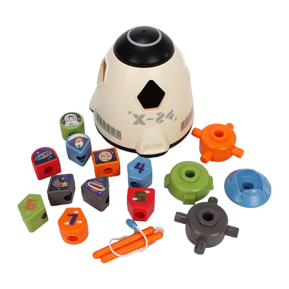 Игрушка выполнена в виде космического корабля с подвижными элементами, шестеренками и сортировщиком. Ребенок сможет вставлять фигурные блоки в соответствующие отверстия, что способствует развитию логического мышления и моторики. Яркие цвета и разнообразные формы фигурок сделают процесс игры увлекательным и познавательным.