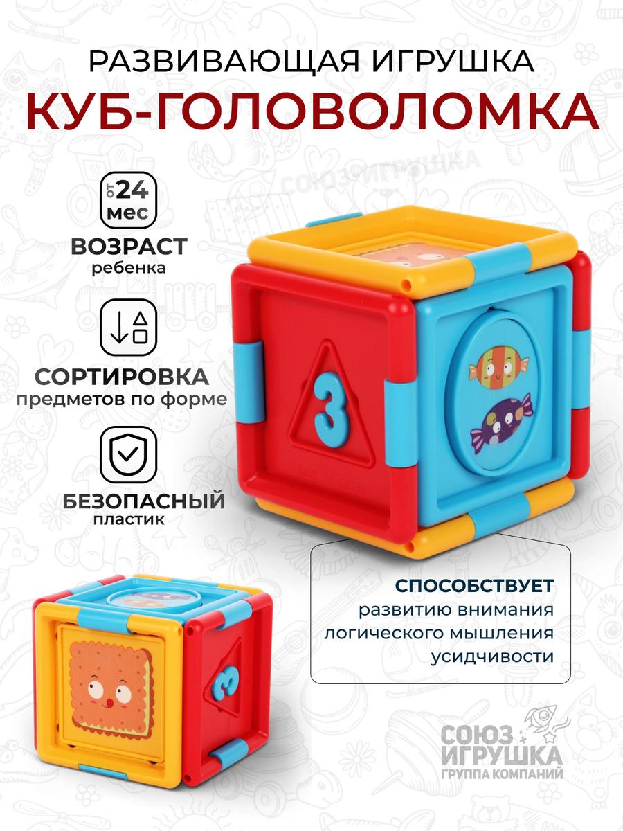 Это многофункциональная развивающая игрушка Куб, которая помогает развивать внимание, логическое мышление и моторику ребенка. Идеально подходит для детей от 24 месяцев, способствует развитию сенсорных и пространственных навыков.