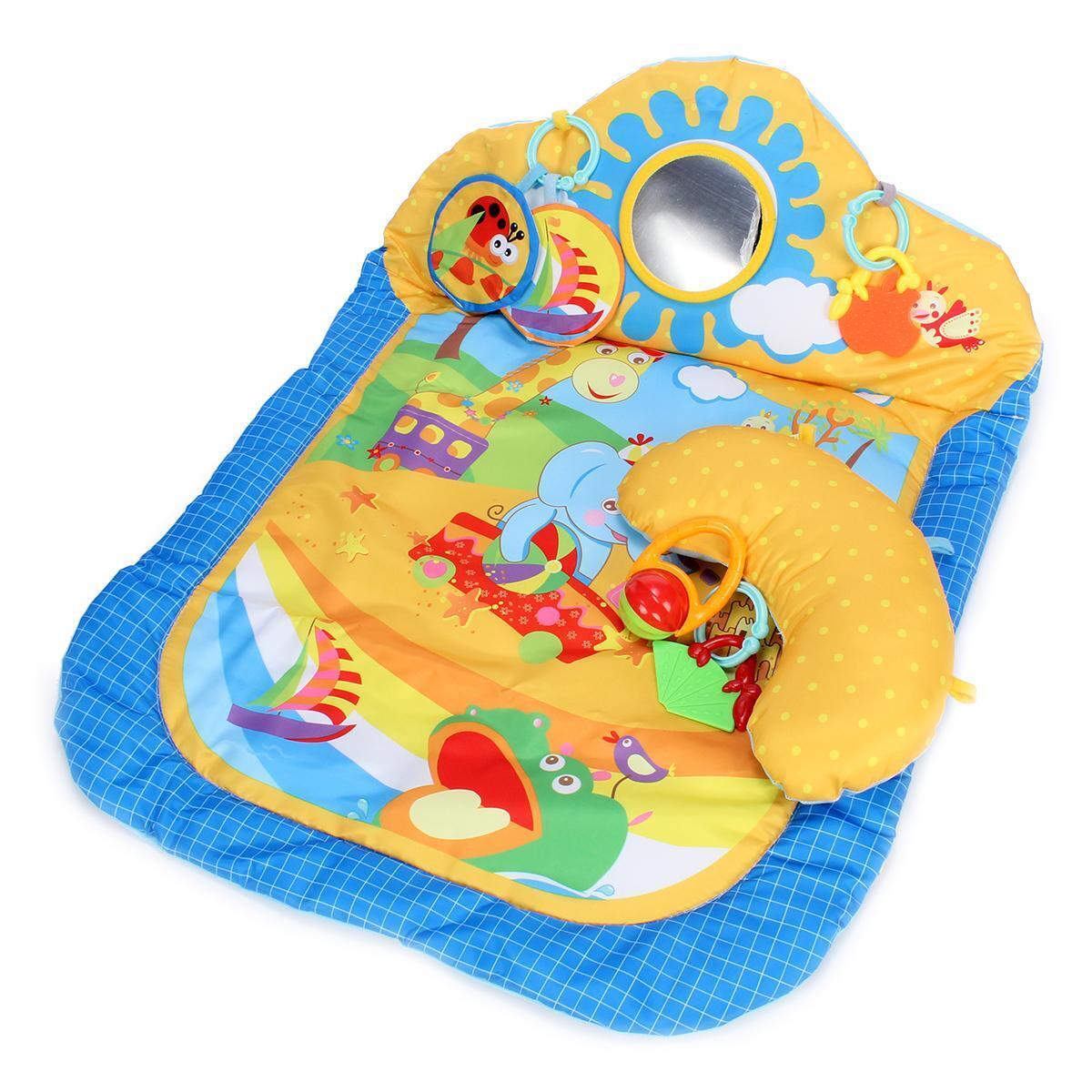 Развивающий коврик для малышей с 4 подвесками, зеркальцем и подголовником, текстиль/пластик
