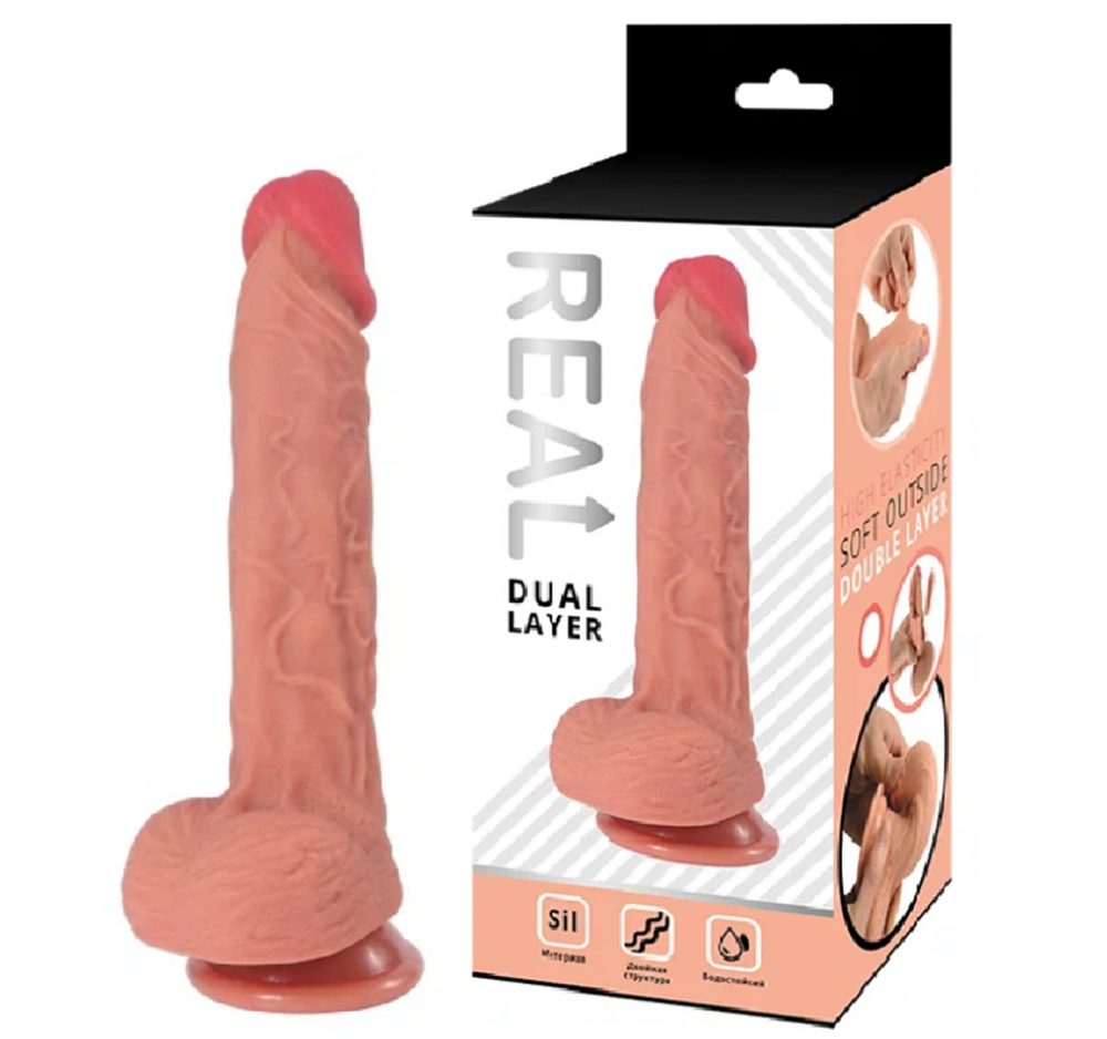 Фаллоимитатор реалистичный 'Real Dual Layer', силикон, присоска, 17 см, бежевый