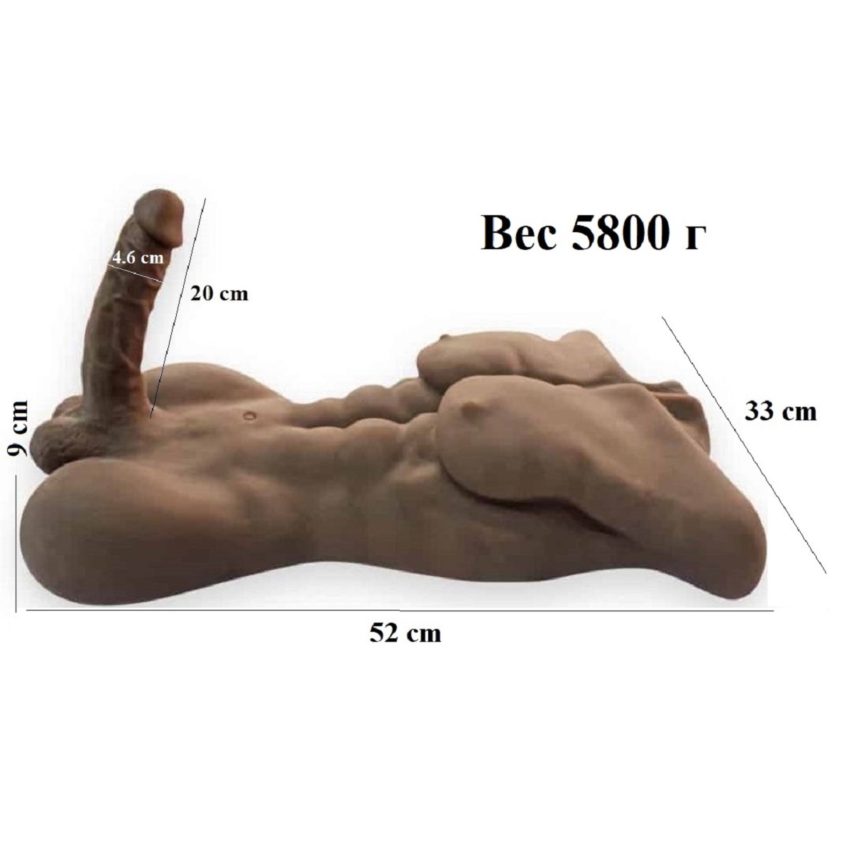 Реалистичный мужской торс «vincent» мулат с фаллосом 54 см, 19 см, 4,3 см, телесный