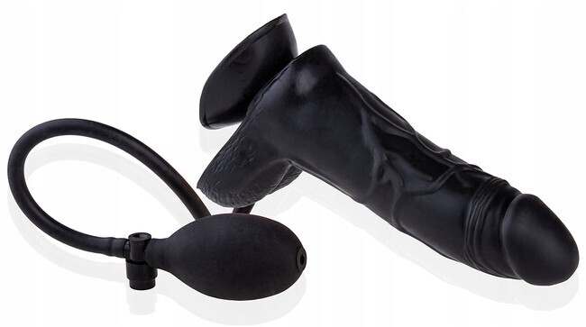 Надувной фаллос реалистичный с присоской, ПВХ, черный, 20х4-6 см, регулируемый объем