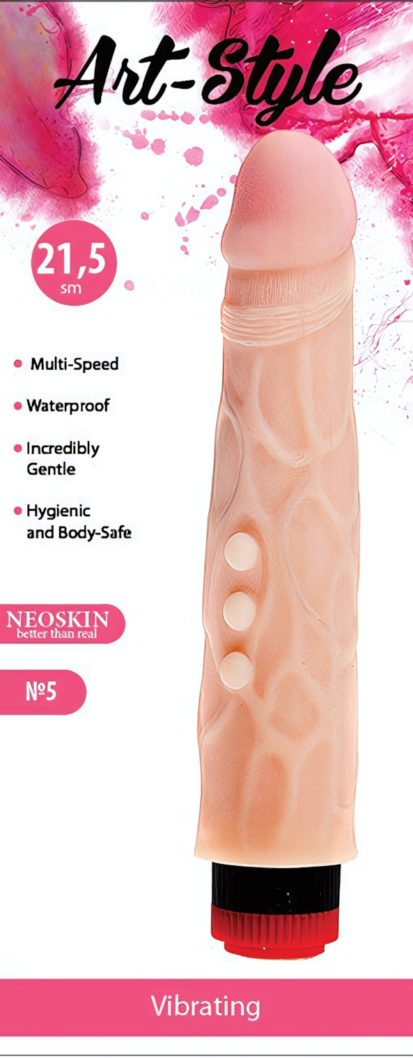 Позвольте себе насладиться комфортом и безопасностью с вибратором Art-Style Neoskin №5. Его уникальное покрытие приятнее на ощупь, чем настоящая кожа, а реалистичная форма подарит незабываемые ощущения.