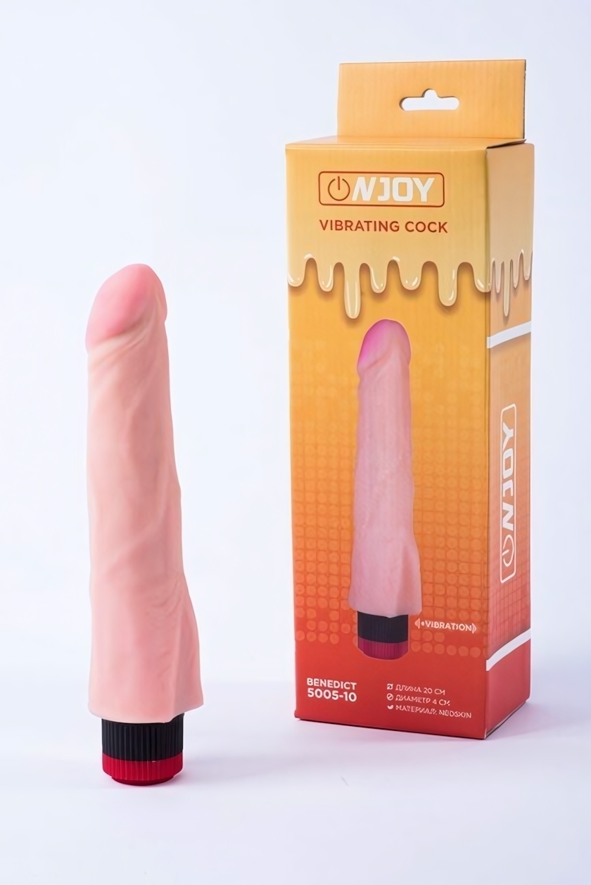 Вибратор реалистичный "Benedict" из кибер-кожи, 20 см, диаметр 4 см, телесный цвет, вибрация