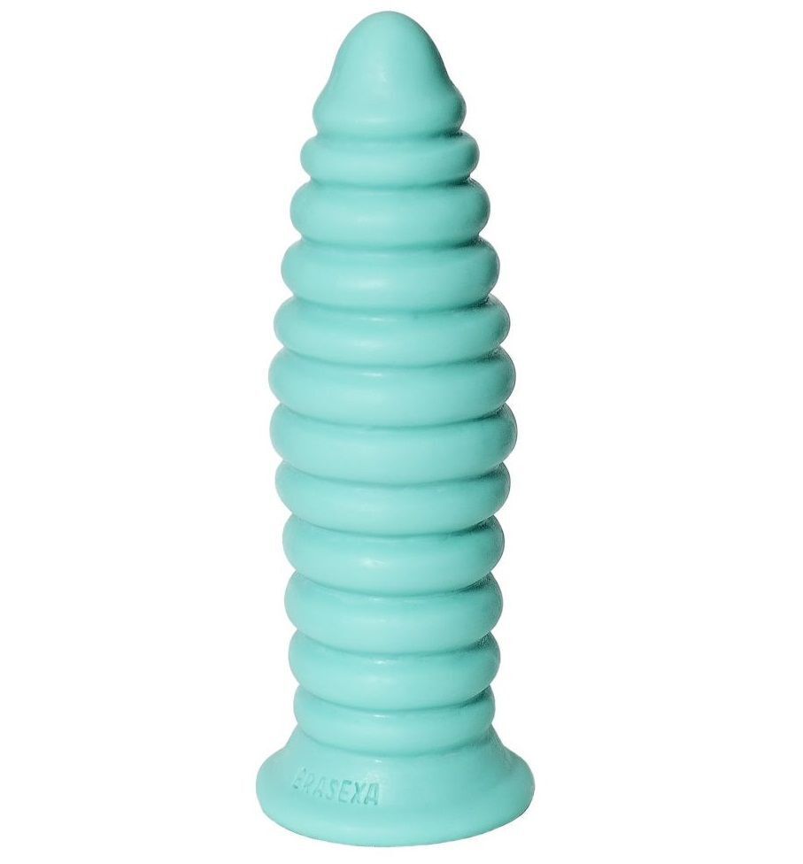 Анальная пробка с ребристой поверхностью Erasexa, мятный цвет, 25,5 см, силикон, безопасное основание