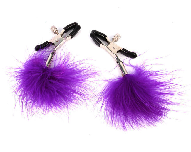Зажимы для сосков регулируемые с мягким пухом, металл/ПВХ, фиолетовый, 6 см
