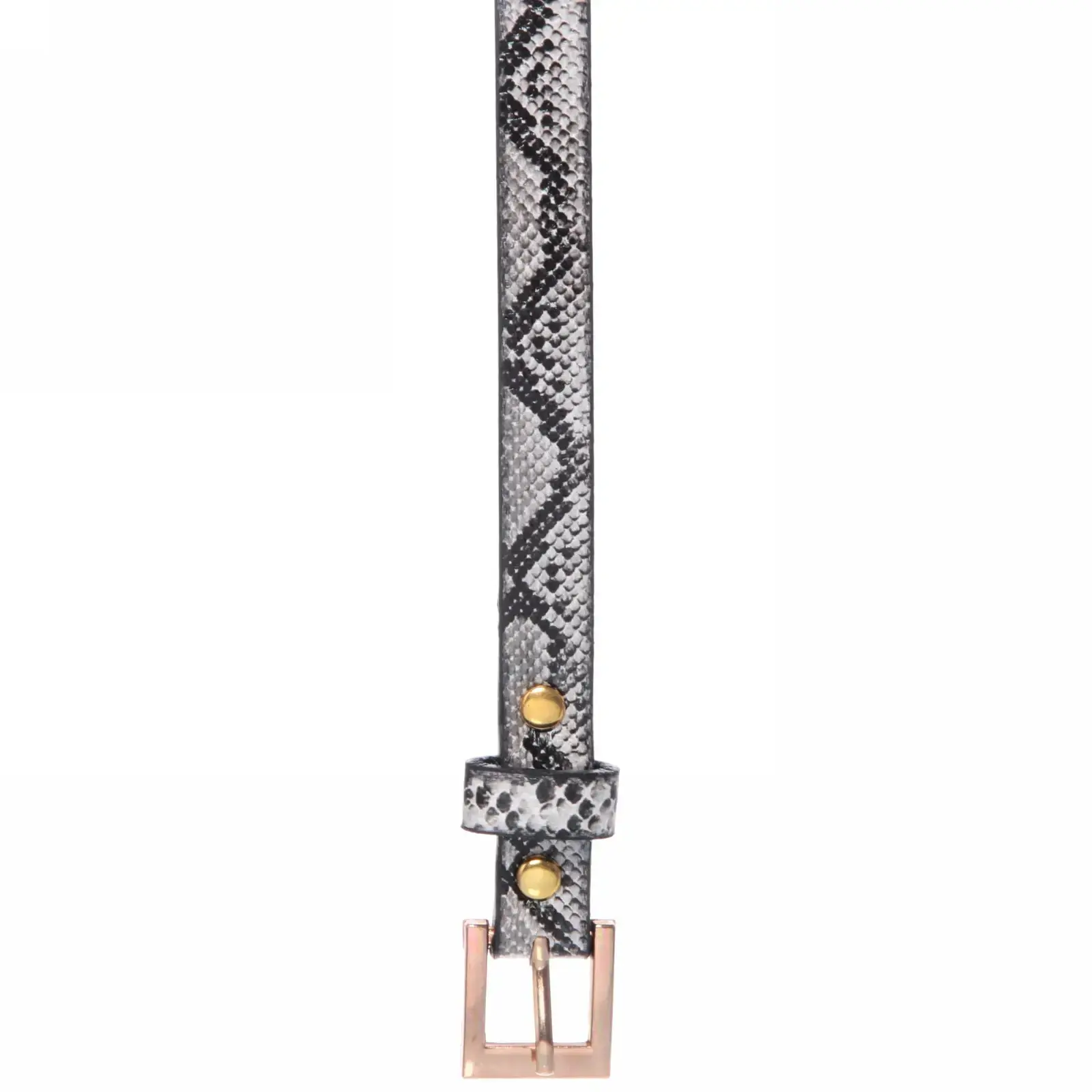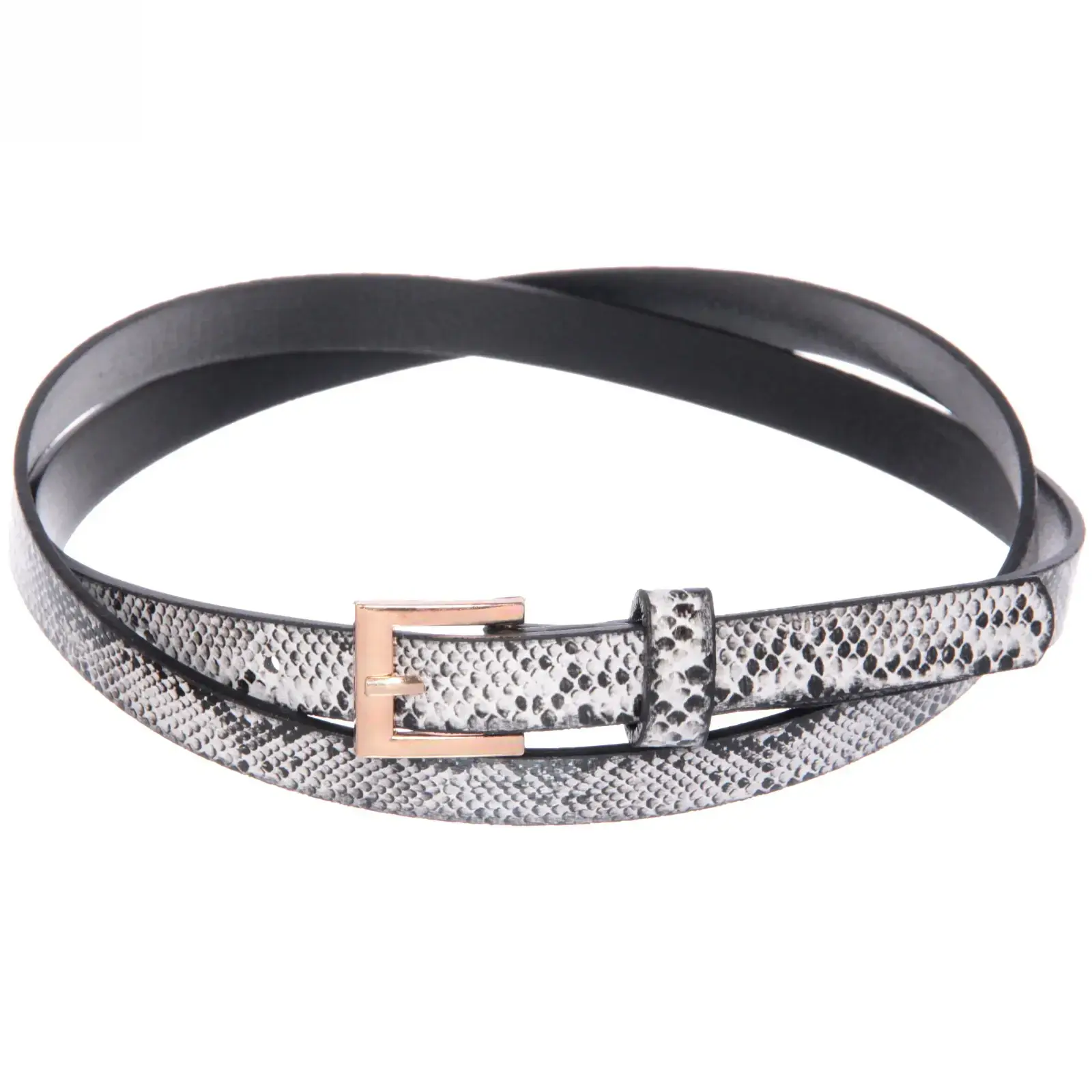 Ремень выполнен из качественного материала, который обеспечивает долговечность и практичность. Его стильный дизайн с имитацией змеиной кожи добавляет нотку шика и элегантности. Металлическая пряжка золотистого цвета не только надежно фиксирует ремень, но и придаёт ему дополнительный шарм. Выбирая этот ремень, вы получаете не только аксессуар, но и элемент, который подчеркнёт ваш стиль и вкус.