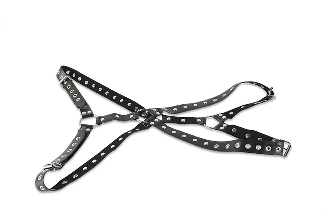 Ремень выполнен из искусственной кожи и металла, что обеспечивает его прочность и долговечность. Он имеет регулируемые части, что позволяет легко подгонять его под нужный размер. Этот бондаж станет не только стильным дополнением к вашему образу, но и практичным инструментом для создания новых ощущений.
