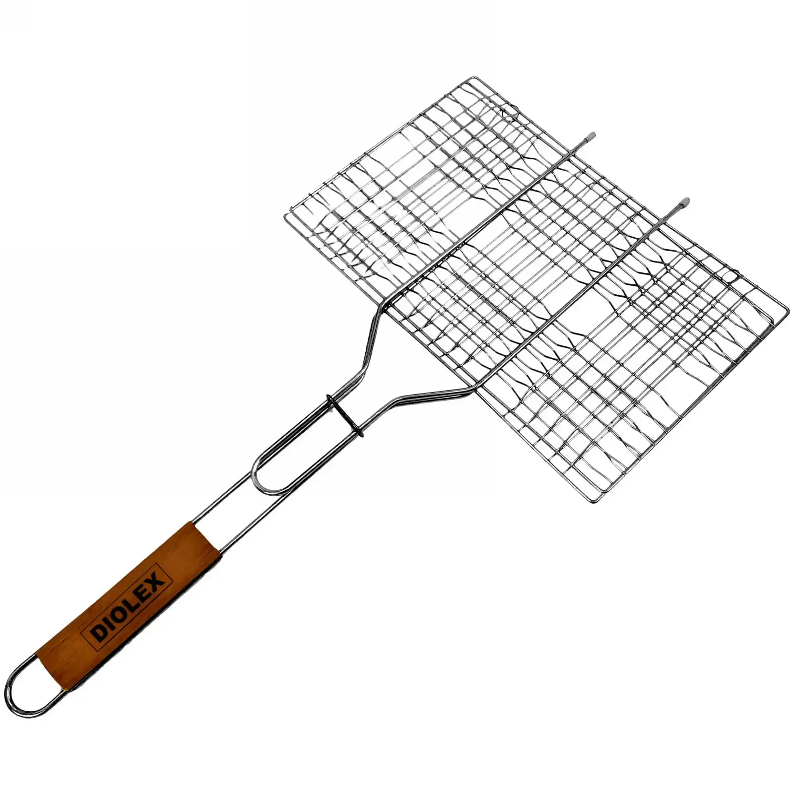 Решетка-гриль 34х22 см с хромированным покрытием — это ваш надежный помощник для приготовления вкусных блюд на открытом огне. Благодаря высококачественной стали, она обеспечивает долговечность и устойчивость к коррозии, что делает ее идеальным выбором для частого использования. Длинная деревянная ручка позволяет удобно держать решетку, не обжигая руки, а конструкция надежно удерживает продукты внутри, что гарантирует их равномерное приготовление.