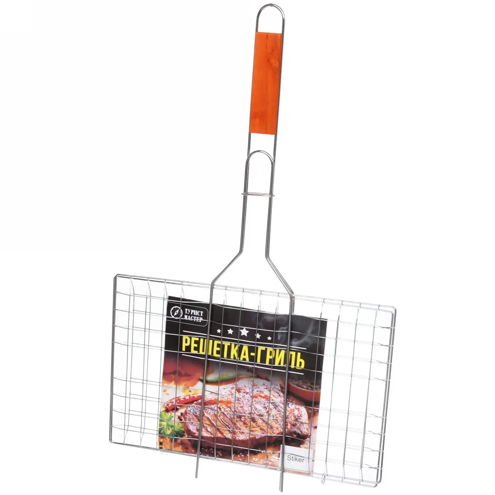 Решетка-гриль с деревянной ручкой, 34х23 см, для мяса и овощей, металлическая конструкция