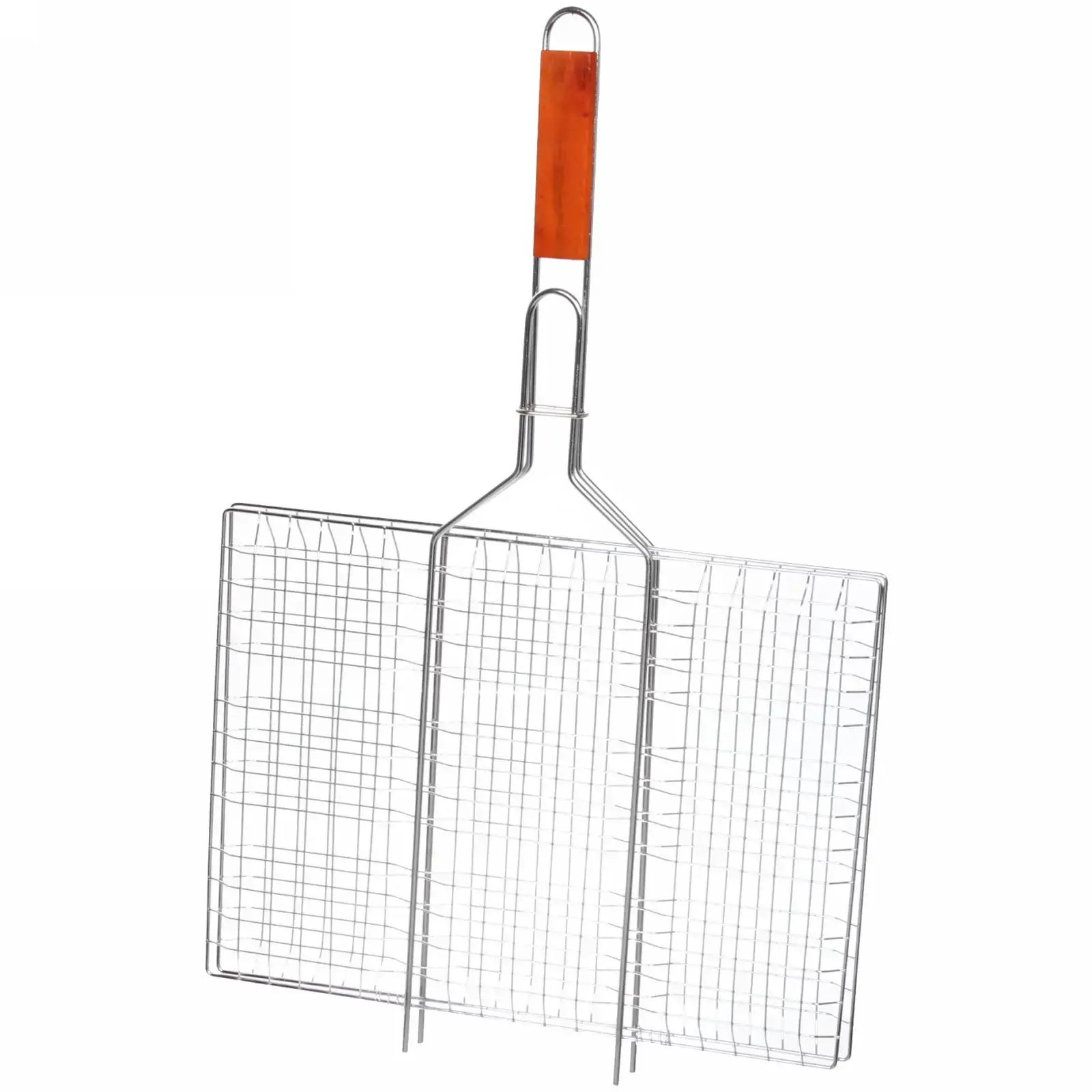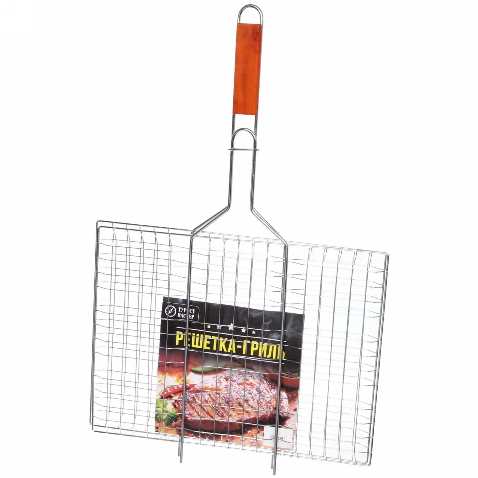 Решетка подходит для гриля, костра или камина. Фиксирующее кольцо надежно удерживает продукты между двумя слоями сетки — просто переворачивайте конструкцию, чтобы добиться равномерной прожарки. Большая рабочая поверхность 40x30 см вмещает порцию для компании из 4-5 человек.