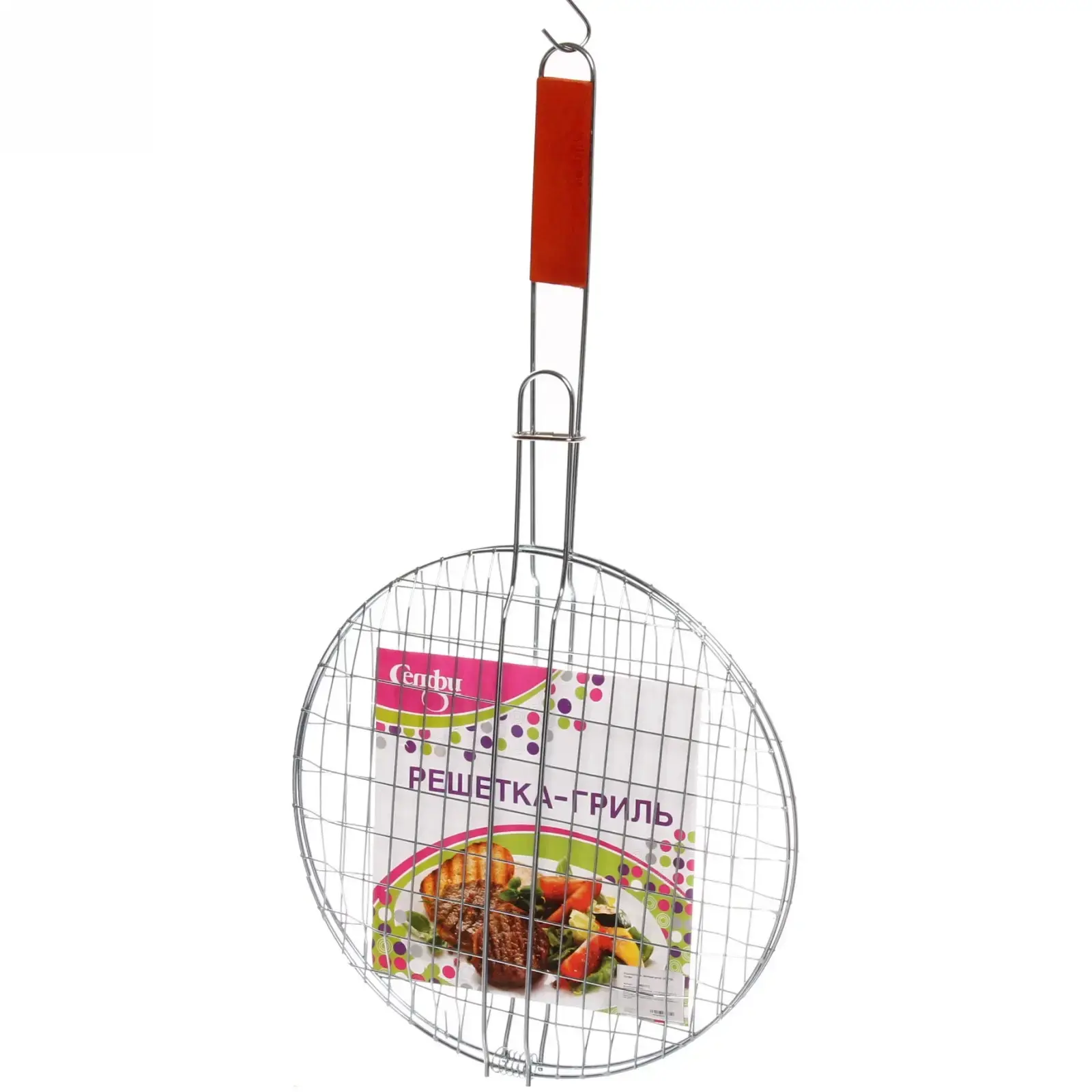 Решетка-гриль круглая D31см с антипригарным покрытием, деревянная ручка, складная, длина 59см