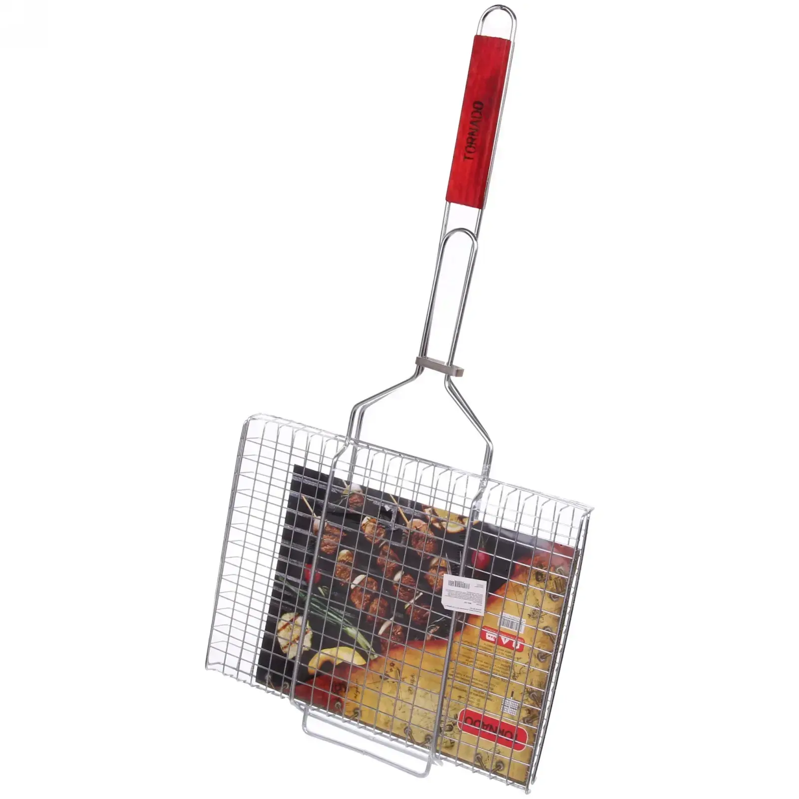 Размеры рабочей зоны решетки составляют 34х25 см, что позволяет разместить несколько порций одновременно. Длина ручки — 66 см, что делает ее удобной для использования на открытом огне. Решетка выполнена из качественного металла, что гарантирует ее долговечность и надежность в эксплуатации.