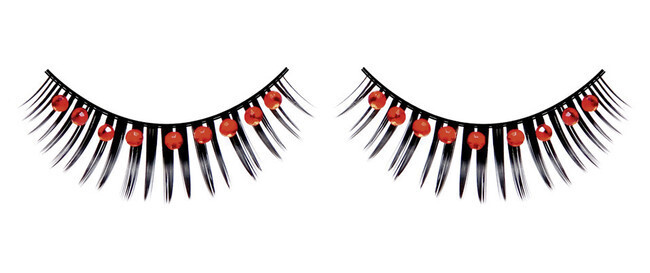 Ресницы изготовлены из качественных блесток, что придаёт им дополнительный шарм и привлекательность. Они имеют черную основу с черными волосками и красными декоративными элементами, что делает их особенно эффектными. Эти накладные ресницы — отличный выбор для тех, кто хочет добавить немного гламура в свой образ.