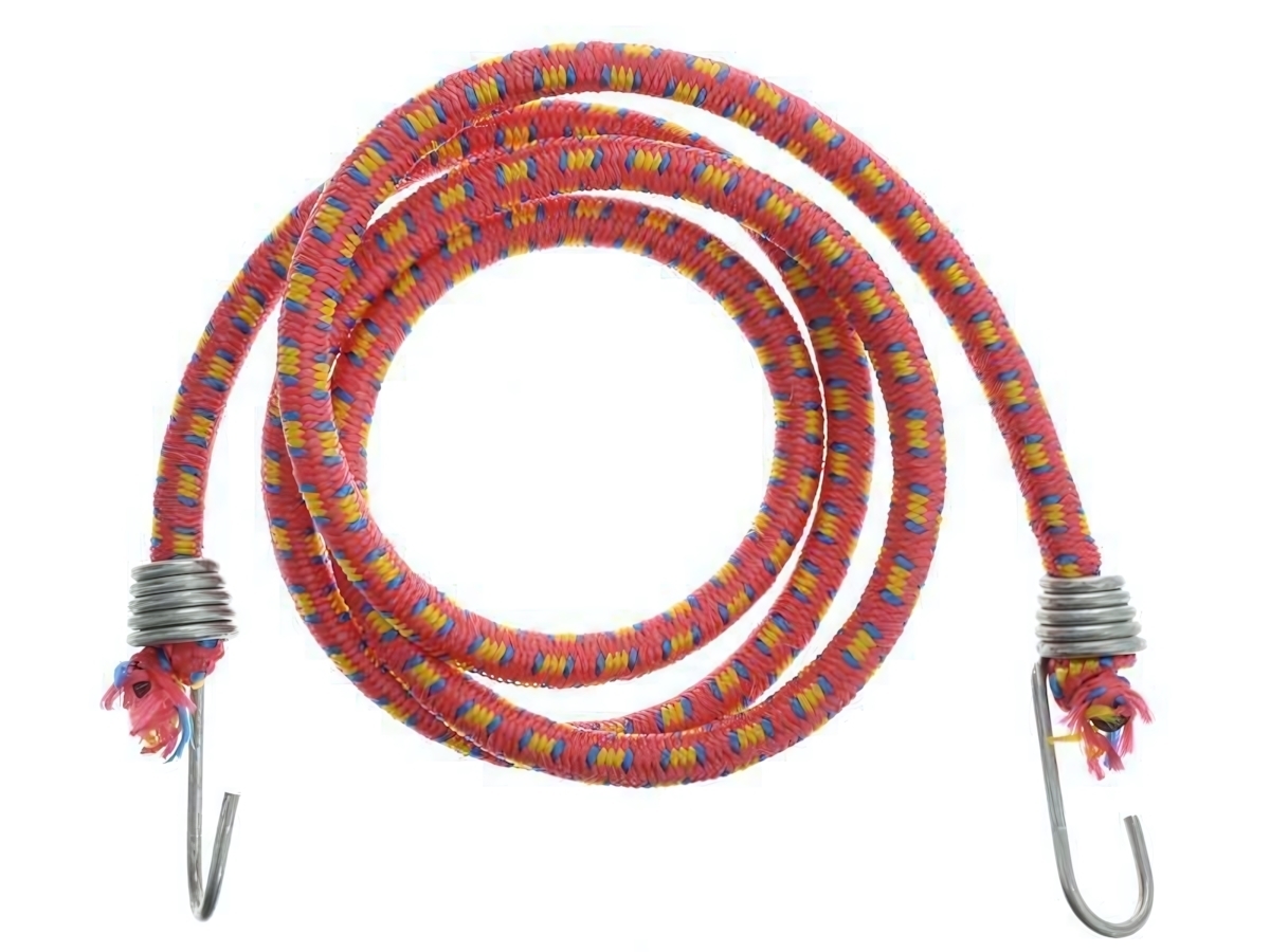 Резинка с металлическими крюками обеспечивает безопасную фиксацию багажа в тележках, на велосипедах или автомобилях. Яркий дизайн делает её не только практичным, но и стильным аксессуаром для повседневного использования.