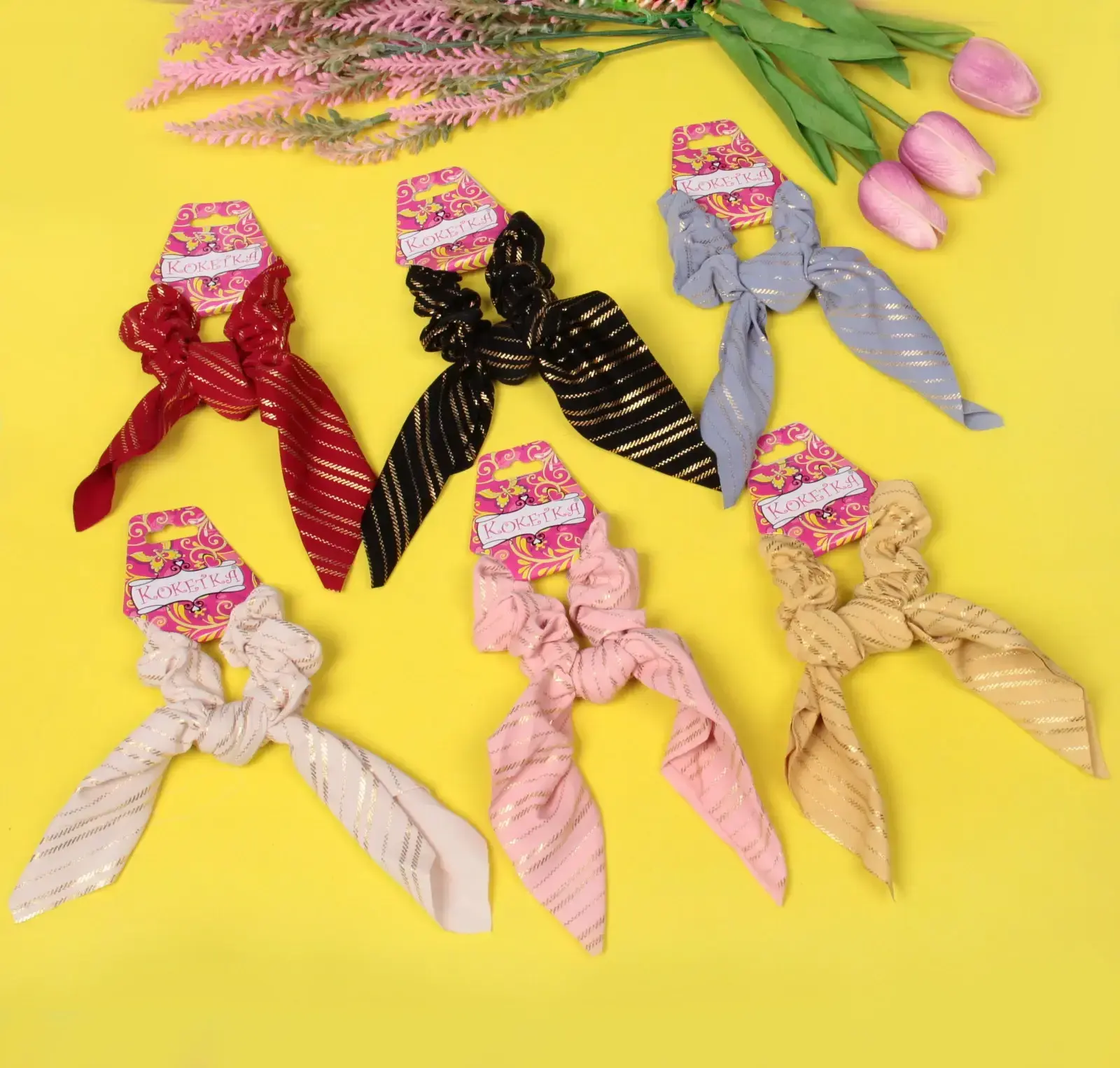 Почему стоит выбрать именно эту резинку? Во-первых, она выполнена из качественного текстиля, что обеспечивает долговечность и комфорт при использовании. Во-вторых, разнообразие цветов — черный, красный, голубой, золотистый, розовый и бежевый — позволяет подобрать аксессуар под любой наряд. В-третьих, стильный дизайн с золотыми полосками добавляет изюминку и делает резинку не только функциональной, но и модной.