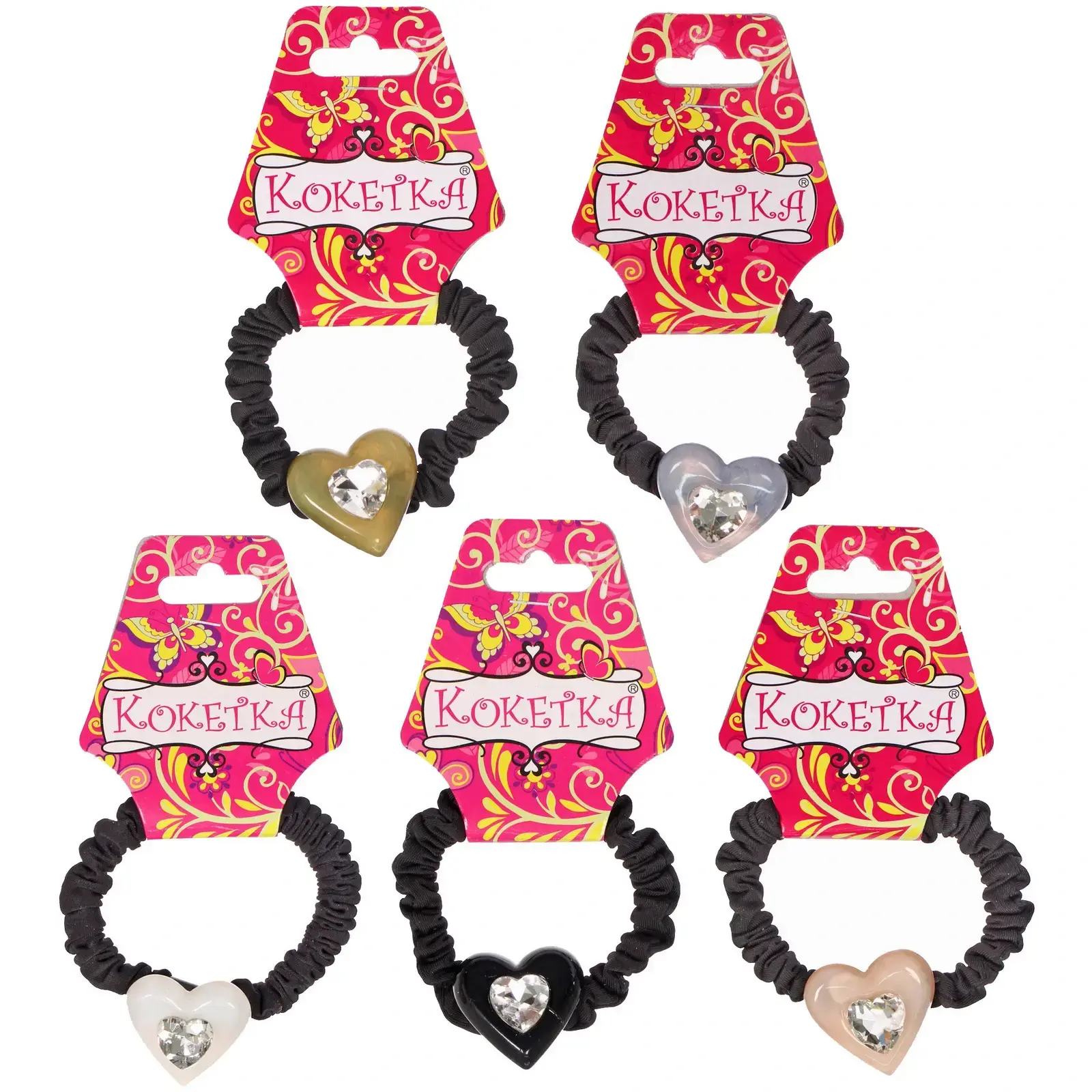 Размер резинки составляет 5,5 см в диаметре, что делает ее стандартной для использования. Декоративный элемент в форме сердца выполнен из пластика и добавляет блеска вашему образу. Резинка подходит для повседневного использования и станет отличным подарком для подруги или близкой девушки.