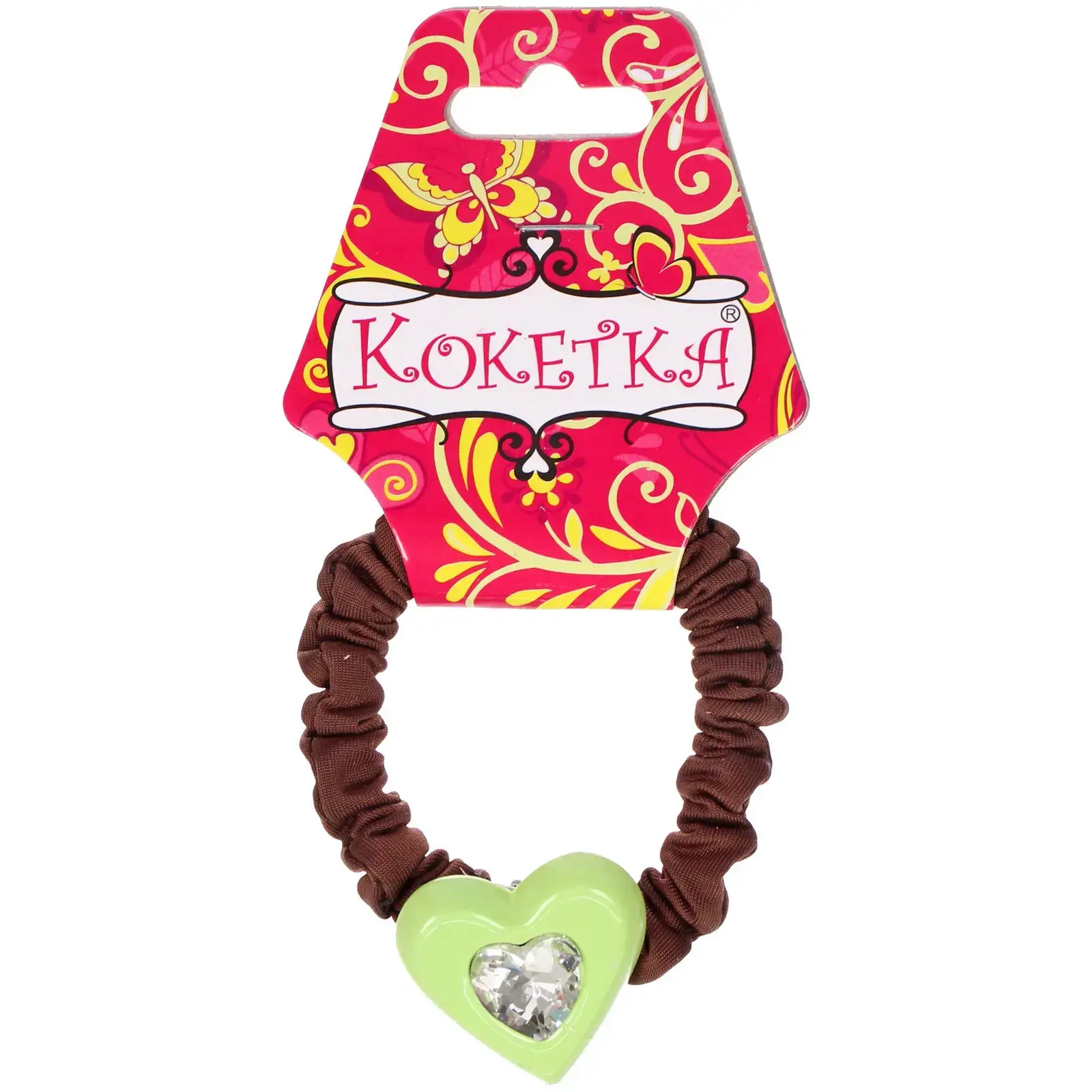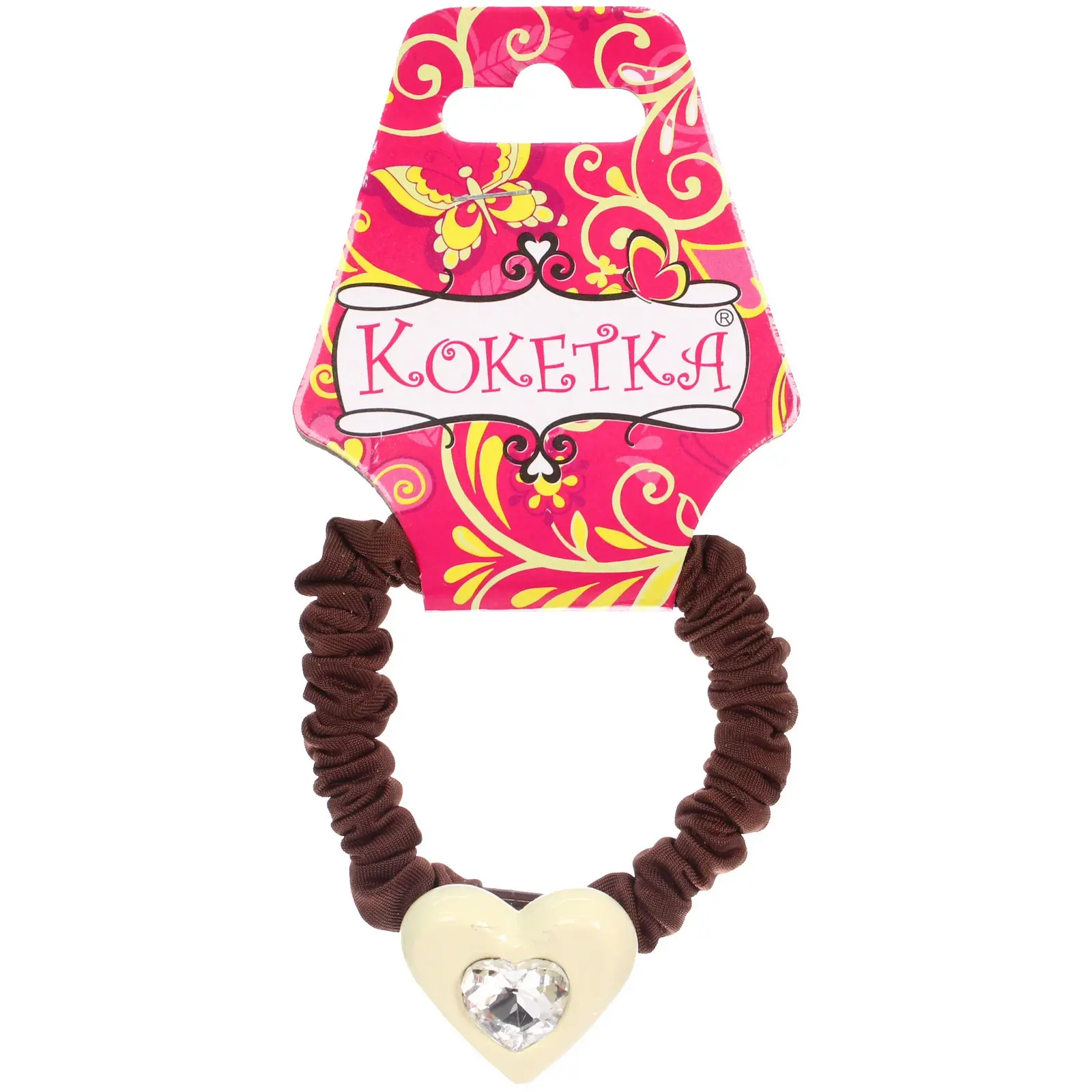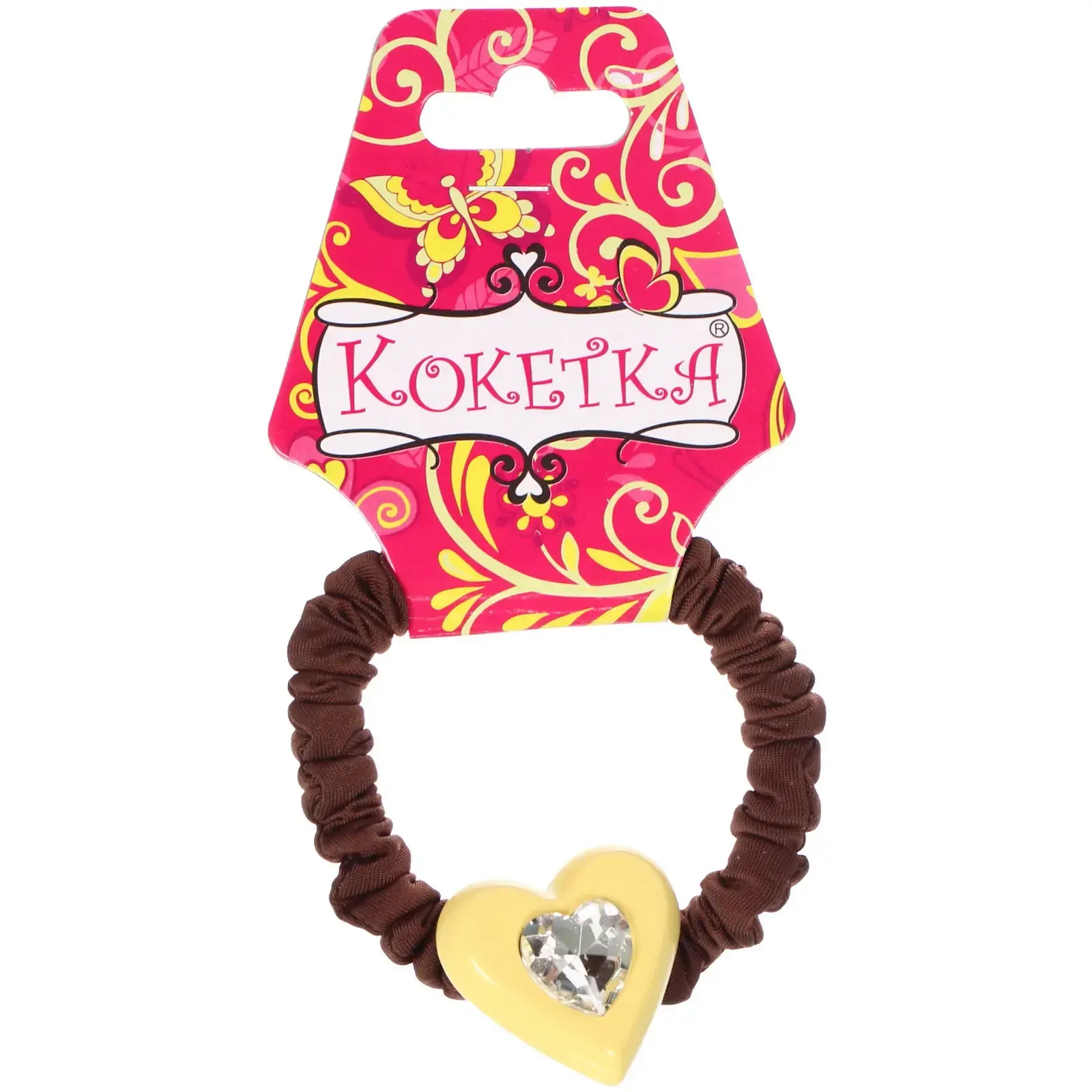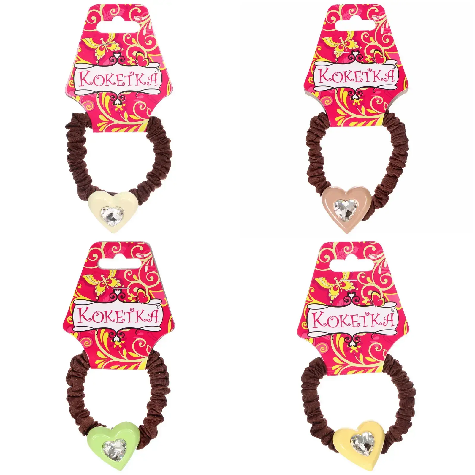 Размер резинки составляет 5,5 см в диаметре, что делает ее универсальной для использования. Она выполнена из текстильного материала, который обеспечивает комфорт при носке. Декоративный элемент в форме сердца добавляет изысканности и делает резинку идеальным подарком для близких. Упаковка оформлена в ярких цветах с логотипом «Кокетка», что подчеркивает стиль и качество продукта.