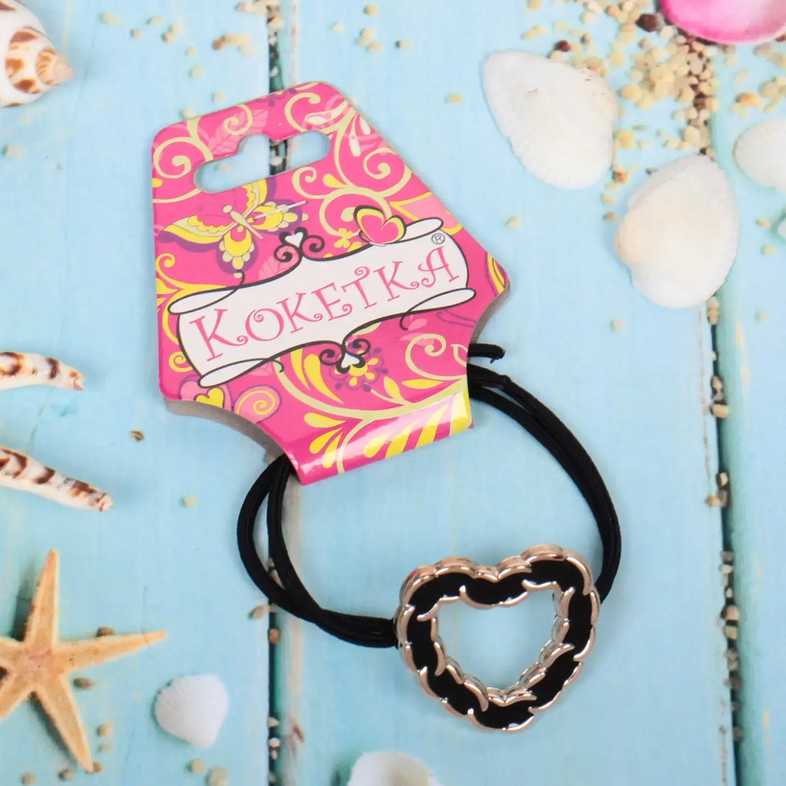 Создайте неповторимый образ с резинкой для волос 'Кокетка'. Элегантное сочетание черного текстиля и золотистого декора в форме сердца станет завершающим штрихом вашего образа.
