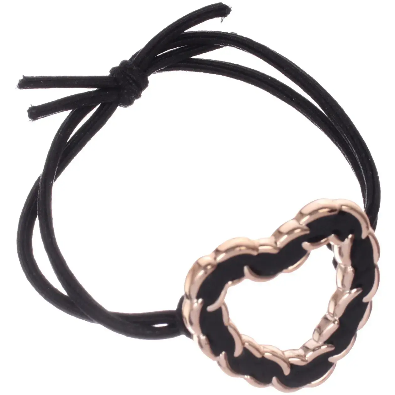 Резинка для волос 'Кокетка', сердце, черная с золотом, d-5см