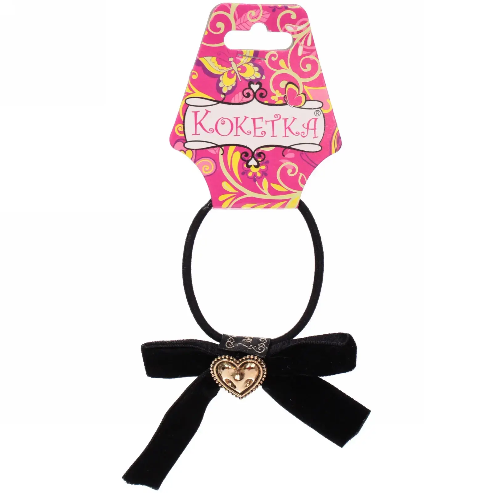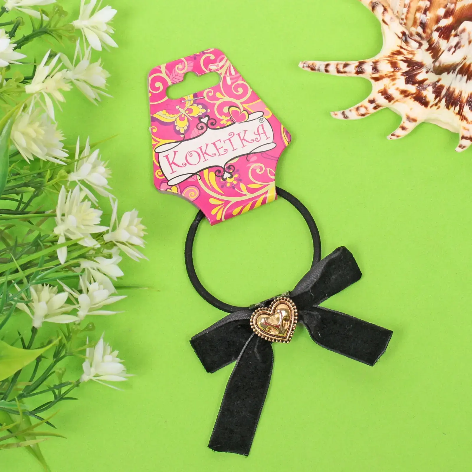 Эластичная основа из текстиля и пластика бережно фиксирует волосы без повреждений. Бархатный бант с золотистым сердечком сохраняет форму даже при активном использовании.