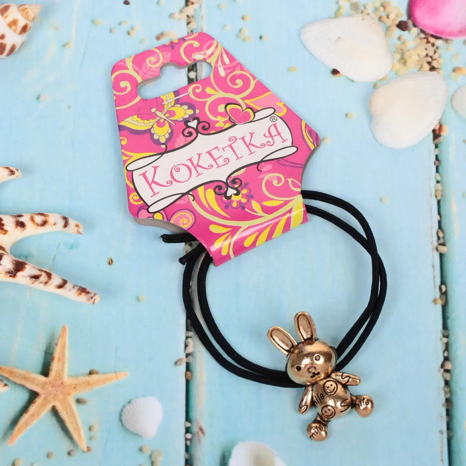 Резинка с золотистым зайцем добавит изюминку вашей прическе, сочетая практичность и элегантность. Идеальный выбор для тех, кто ценит детали в повседневном и праздничном стиле.