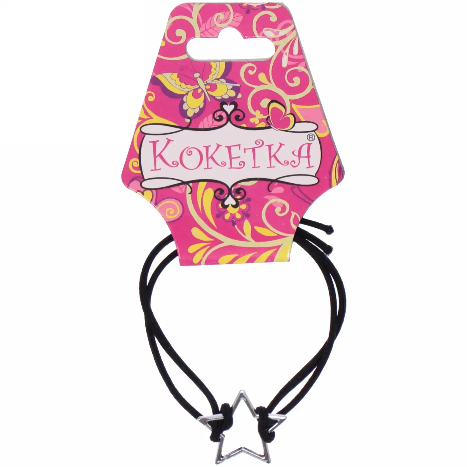 Размер резинки составляет 5 см в диаметре, что делает ее удобной для использования. Металлическая деталь в форме звезды выполнена в серебристом цвете, что добавляет изысканности. Резинка представлена на яркой картонной подложке с декоративными элементами, что делает ее привлекательной для покупки.