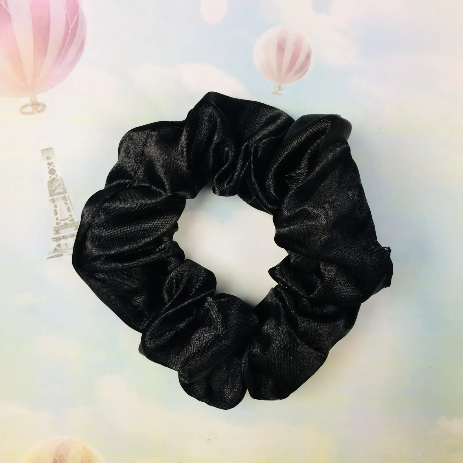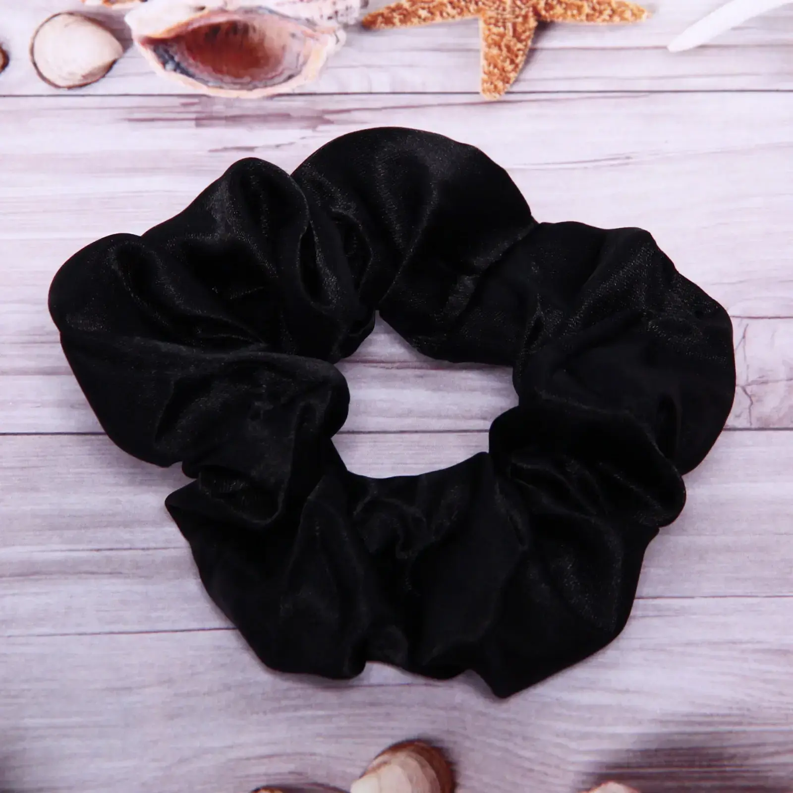 Резинка имеет гладкую, слегка блестящую текстуру, что придает ей стильный вид. Она оформлена в классическом черном цвете, что делает ее идеальным дополнением к любому образу. Размер резинки составляет 10,5 см в диаметре, что позволяет удобно фиксировать волосы, не создавая излишнего давления.