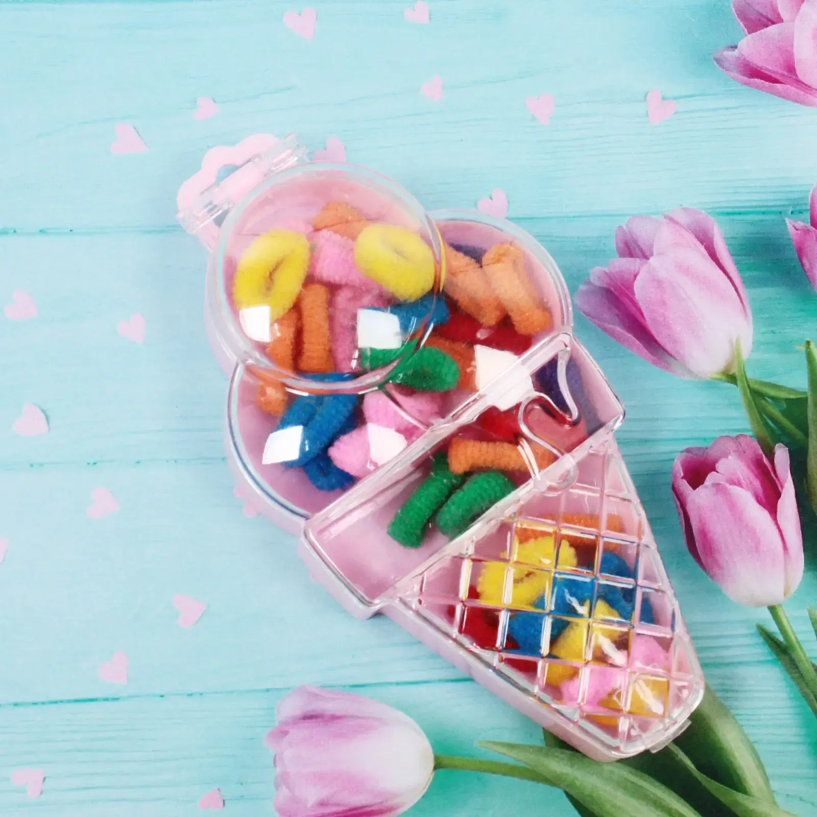 Яркие резинки для волос в удобном органайзере-мороженом