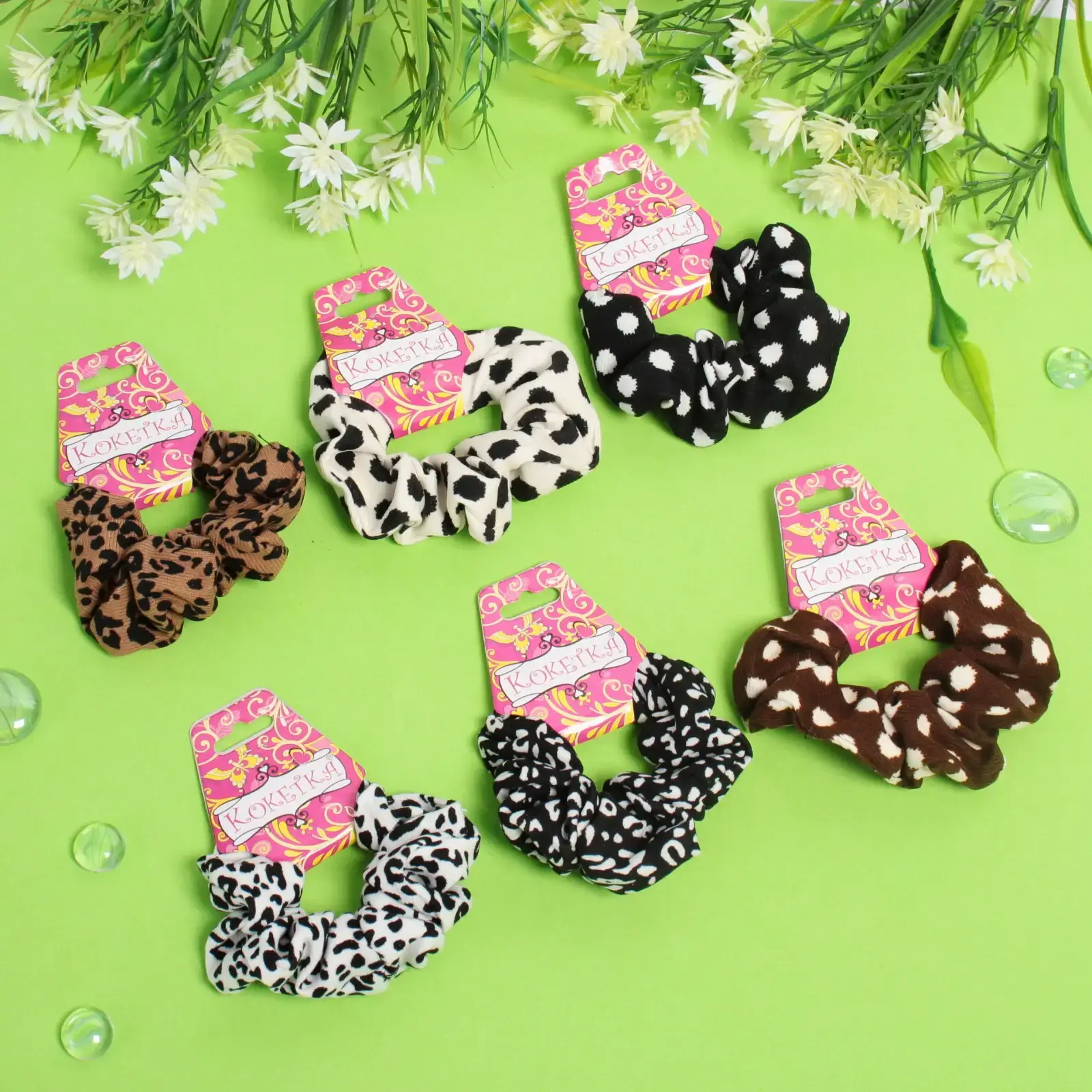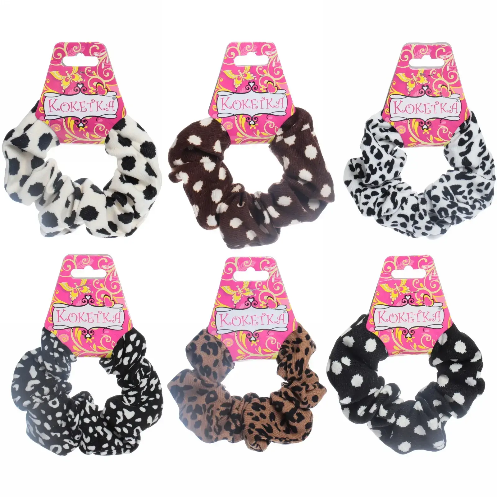 Размер: диаметр каждой резинки составляет 12 см. Материал: текстиль. В наборе представлены шесть различных цветовых решений, включая классический леопардовый узор, черно-белые пятна и другие варианты. Это позволяет подобрать идеальный аксессуар под любой наряд или настроение.