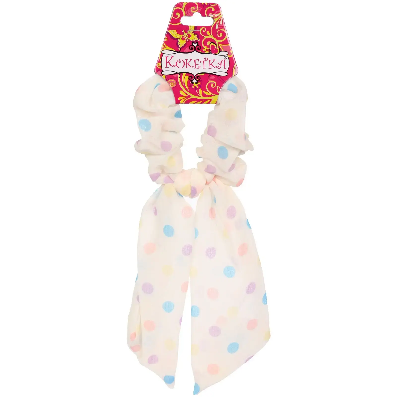 Резинка выполнена из текстильного материала, который обеспечивает надежную фиксацию и комфорт при использовании. Длинные ленты, свисающие с резинки, позволяют создавать различные варианты укладок, добавляя вашему образу оригинальности. Упаковка с яркой маркировкой «Кокетка» делает этот аксессуар не только практичным, но и стильным дополнением к вашему гардеробу.