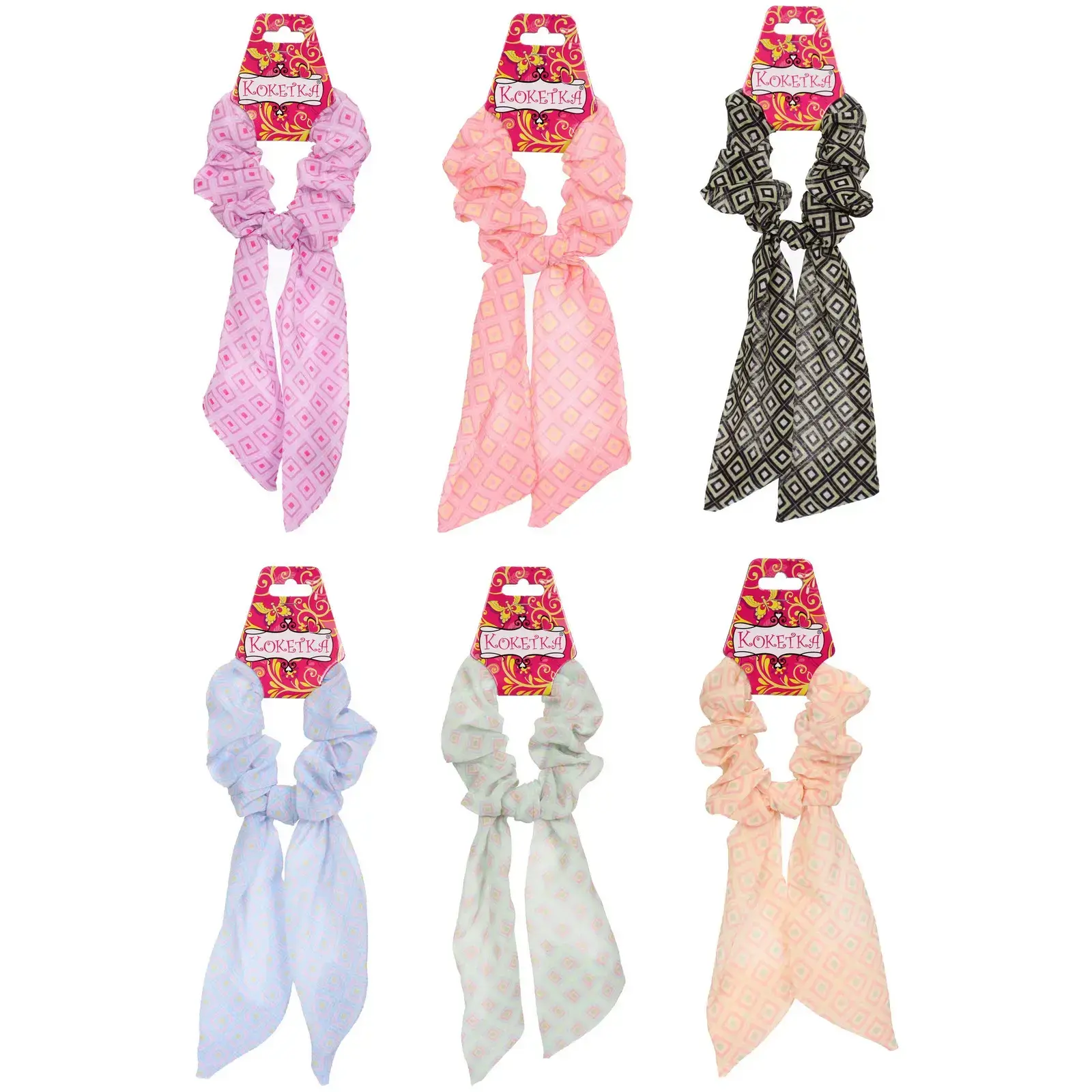 Каждая резинка имеет объемную и пышную форму, что делает ее не только функциональной, но и стильной. Дизайн с геометрическим узором в виде ромбов добавляет игривости и оригинальности. Резинка «La Belle» станет отличным дополнением к вашему гардеробу и поможет вам выделиться из толпы.